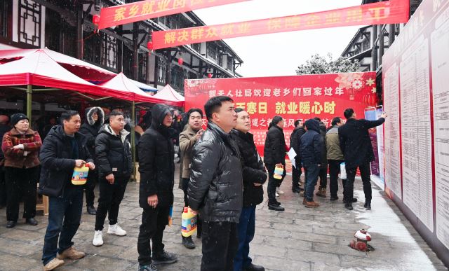 山高天寒日,就业暖心时。2月2日,在大雪纷飞中,承载着农民工群众殷切的期盼,朝天区2024年“栈道之都 春风行动”新春招聘会走进曾家镇,吸引了600余名农民工群众前来求职。朝天区欣达人力资源有限责任公司业务部负责人刘贤兵介绍:“按照计划,1至3月,将在全区开展12场招聘会。曾家镇是第七个专场,共有66家企业提供岗位1165个,现场初步达成求职意向270余人。”