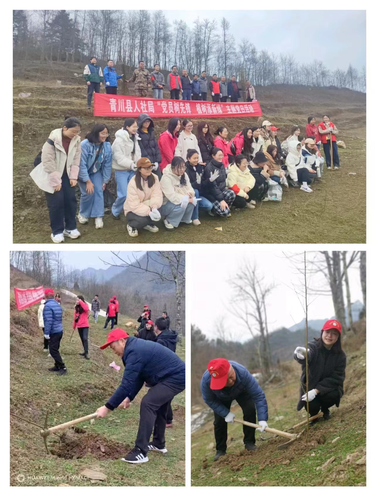 青川县人社局第一、第二党支部开展“党建引领践初心 义务植树添新绿”主题党日活动