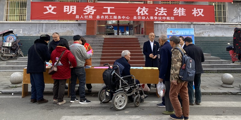 工作人员还通过发放农民工人社政策、劳动法、劳动争议调解仲裁法等政策法律宣传资料,现场解答群众外出务工遇到的法律问题等方式,引导农民工遇事按法律程序表达诉求,维护自身合法权益。