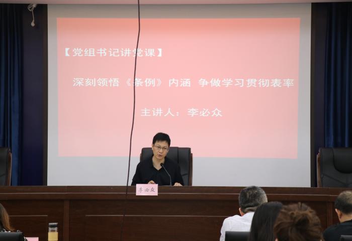 为深入学习贯彻习近平总书记关于党纪学习教育的重要讲话和重要指示精神,进一步增强学习贯彻《中国共产党纪律处分条例》(以下简称《条例》)的政治自觉和思想自觉,5月8日下午,剑阁县人社局党组书记、局长李必众以“深刻领悟《条例》内涵 争做学习贯彻表率”为主题,向全局党员干部讲授专题党课。