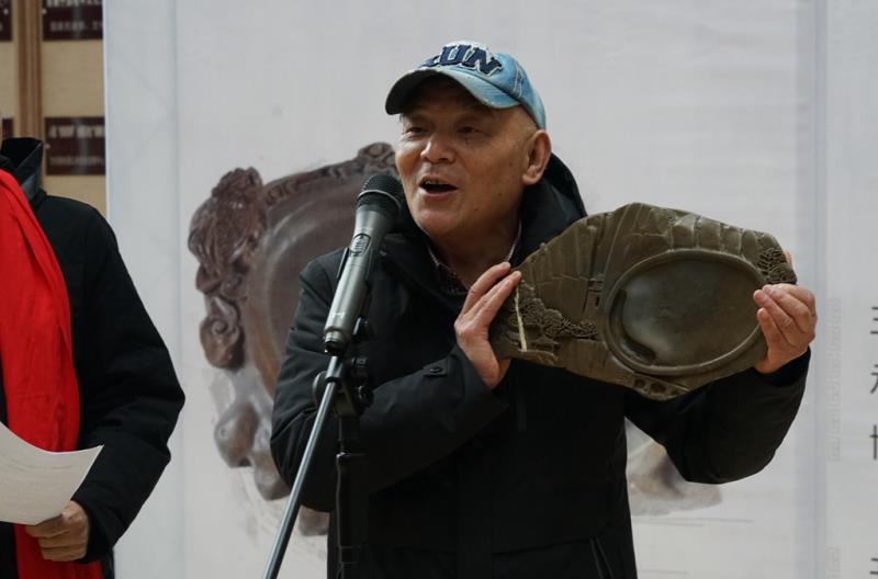 吕施云向市美术馆无偿捐赠了工艺美术作品《紫金玉砚台》,深情讲述了作品创作的心路历程。市美术馆馆长罗天文代表市美术馆接受捐赠,并向吕施云先生颁发收藏证书。市文化广播电视和旅游局副局长李子林宣布展览开幕。
