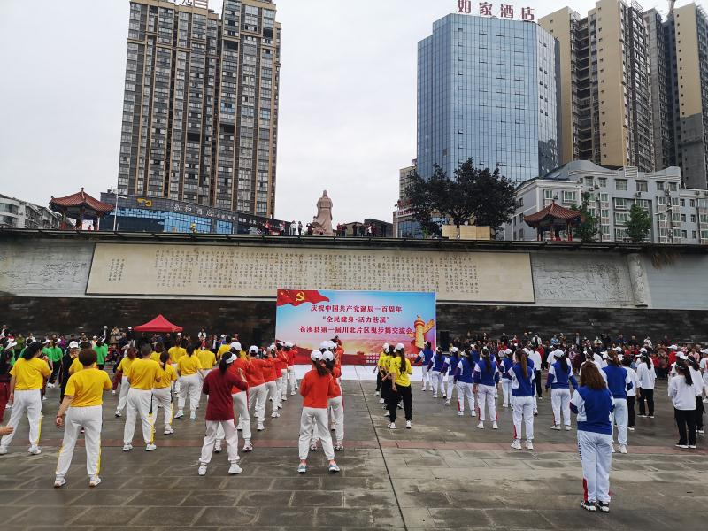 4月18日上午,雨后的嘉陵江畔空气格外清新,苍溪县城水幕广场人头攒动,乐声阵阵。由苍溪县文化馆主办的庆祝建党100周年“全民健身·活力苍溪”苍溪县第一届川北片区曳步舞交流会在这里隆重举行。来自江油、巴中、广安、阆中、旺苍、利州、剑阁、昭化、苍溪等九地的曳步舞团参加交流展演。