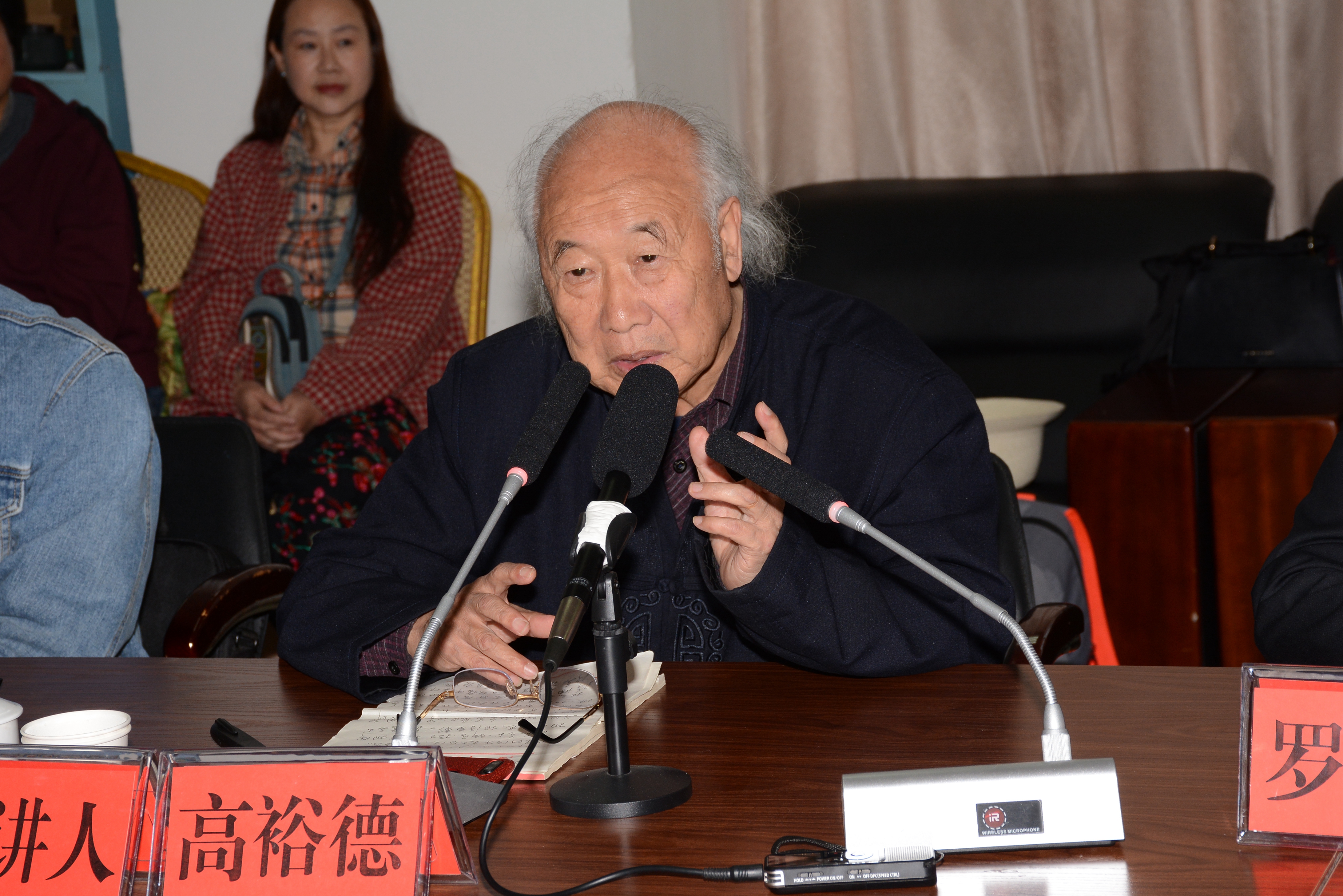 高裕德老师以《我和我的画》为主题,用通俗易懂的语言,讲述了他60多年的人生感悟和艺术创作历程,深有感触的讲了他的《沁园春》、《伴侣》等红色题材国画作品的历史背景、创作灵感、创作手法、艺术表现、主题提炼等,深切表达了他对毛主席、周总理等党的领袖的思想感情。引导大家要把德艺双馨作为一生追求目标,以德为重,加强艺术修养,珍惜新时代优越的艺术创作条件。不忘初心、牢记使命,为时代创作,为人民画像,为实现中华民族伟大复兴的中国梦提供精神动力。他还结合自己曾在群众艺术馆工作经历,介绍了做好一名基层文化馆、美术馆美术工作者的经验做法。高老师还现场为大家示范创作国画作品。近两个小时的讲座,不时迎来阵阵掌声。讲座结束后,现场观众争先恐后畅谈感想体会。