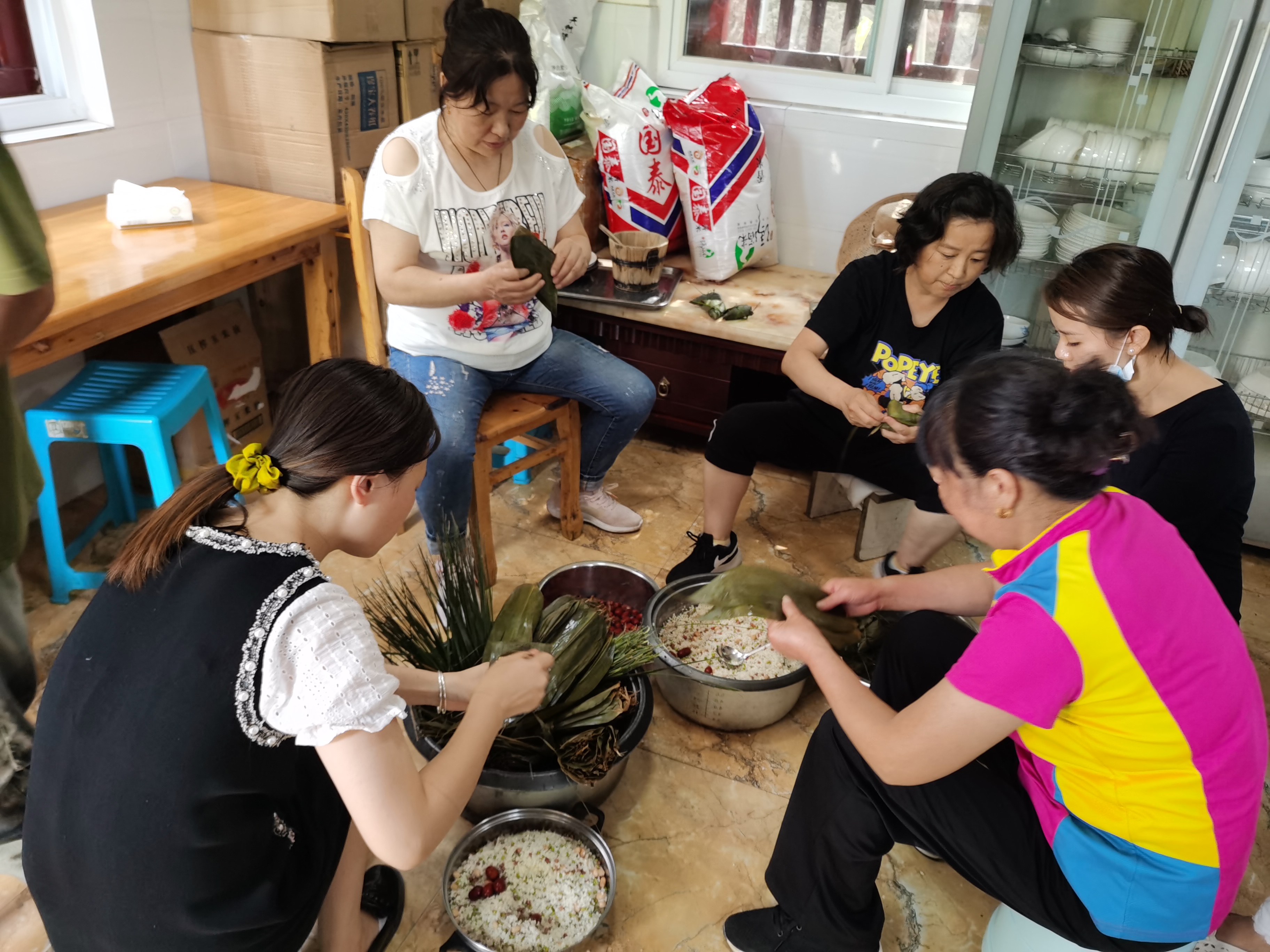 “集体包粽子”活动现场,提前准备好的糯米、红枣、粽叶等必备材料整齐地摆放在桌子上。比赛开始前,大家积极学习如何包粽子,卷粽叶、放米、捆扎,并准备把融入爱意的粽子带给家人分享。随着比赛号令发出,一场速度与颜值的比拼拉开了序幕。各位参赛职工纷纷拿出看家本领,拿粽叶,舀糯米,压紧实、封口、扎捆,个个十指翻飞,各种动作犹如高手过招,一气呵成,很快完成了一个个诱人的粽子。不一会儿,一堆堆粽子就呈现在眼前。