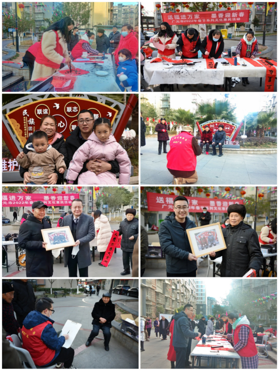 1月24日,壬寅虎年春节前夕,市文化广电旅游局党组书记、局长罗全生带领市美术馆文化志愿者,走进利州区东坝街道东屏社区,与群众面对面、心贴心,开展了“送福进万家 墨香迎新春”文化惠民活动。写福字、送春联、画肖像、拍全家福,文化志愿者们各展身手,把美好祝福送到居民手中,传递浓浓年味儿。