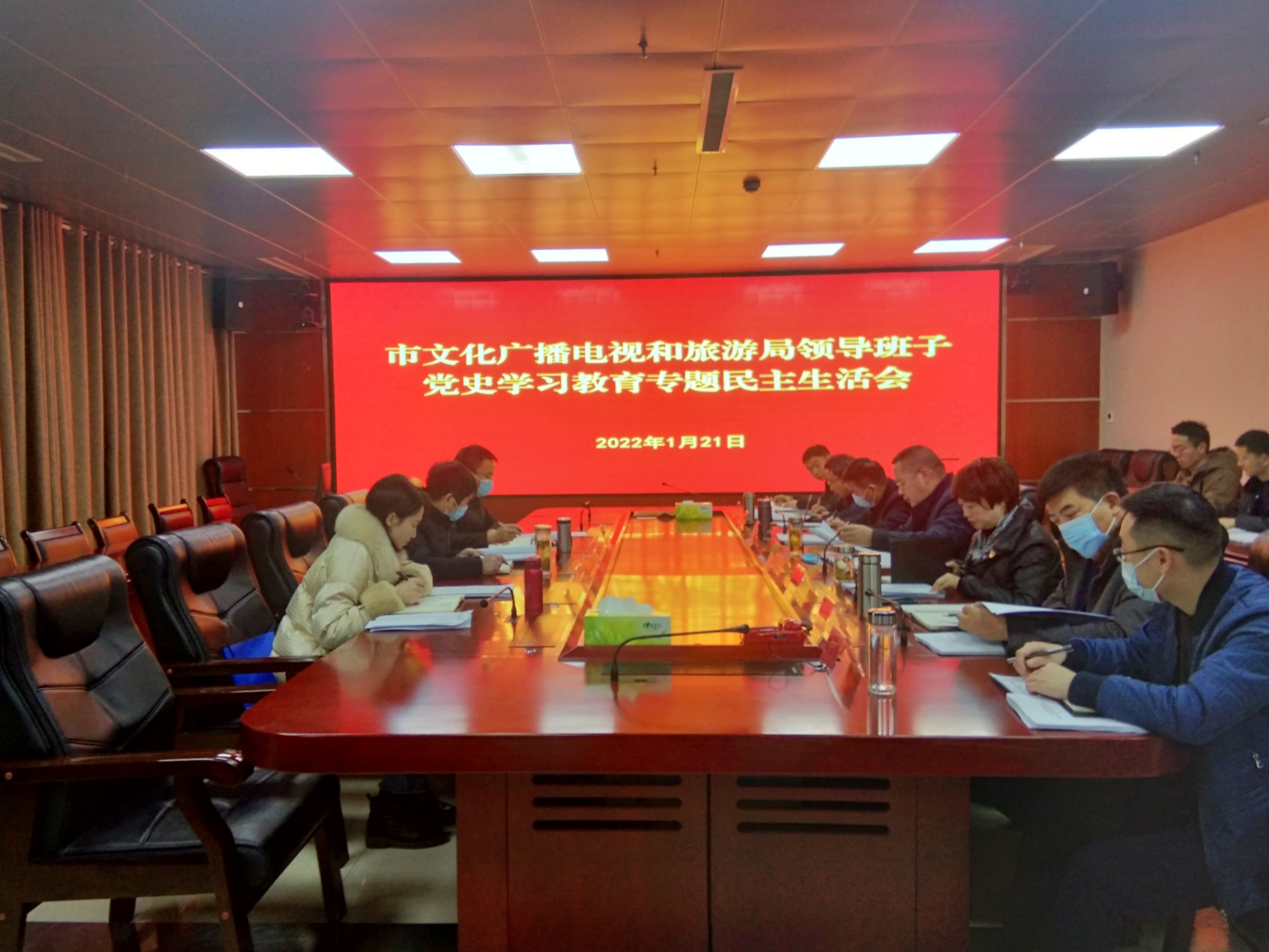 2022年1月21日,市文化广电旅游局召开2021年度领导班子党史学习教育专题民主生活会,党组书记、局长、市文物局局长罗全生同志主持会议。市级部门单位领导班子党史学习教育专题民主生活会第四督导组组长罗家松同志、市纪委监委驻市委宣传部纪检监察组组长王镜云同志到会指导。局班子全体成员出席会议,局办公室、人事科、机关党办负责同志列席会议。