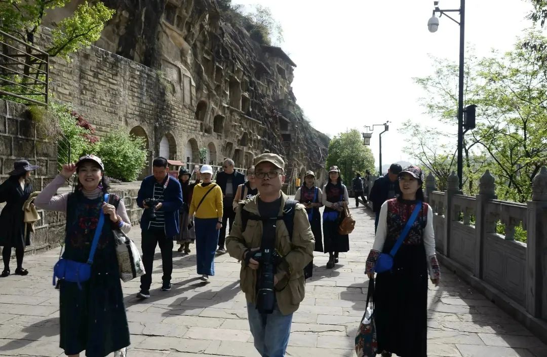 4月6日,由广元市文化广播电视和旅游局主办,广元石窟研究所、广元市美术馆承办的“最美人间四月天 文博景区随手拍”公教活动在千佛崖景区开展,近20名摄影爱好者参加活动。