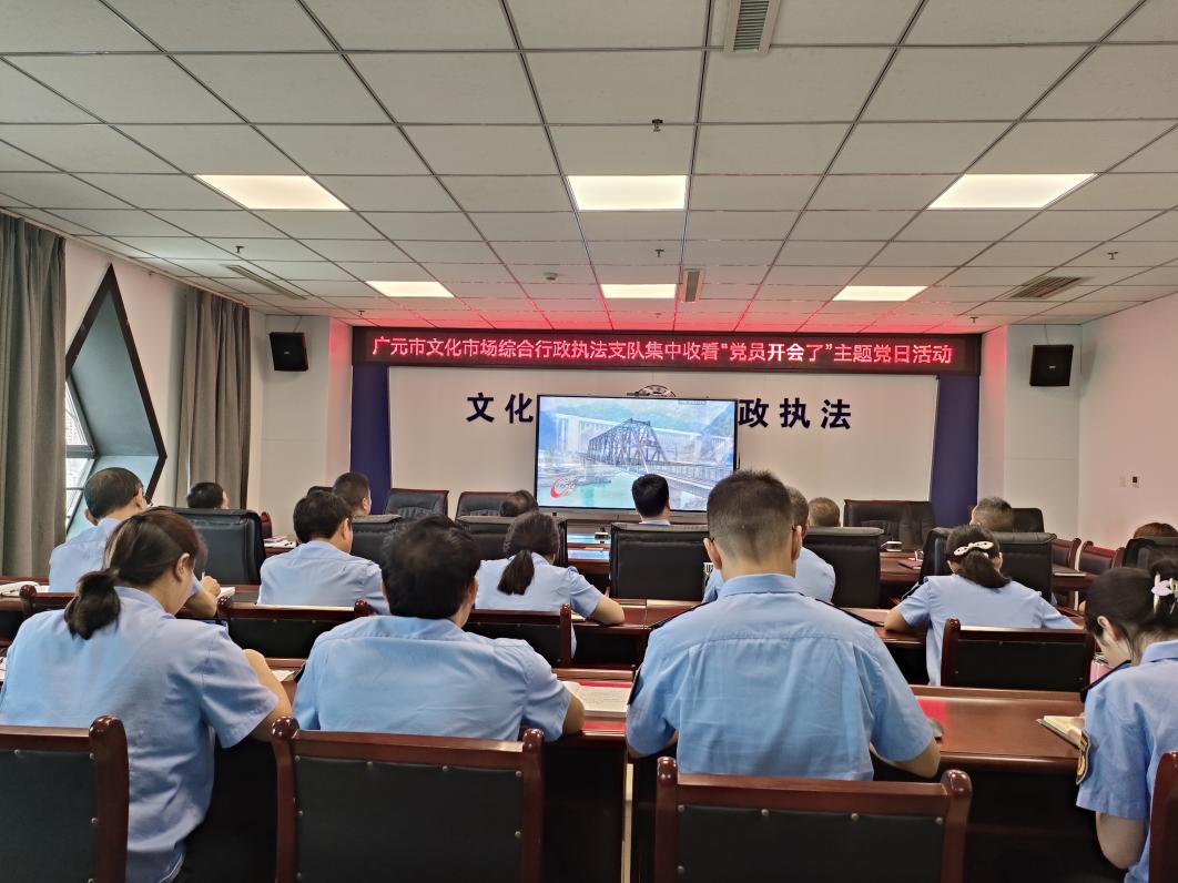 大会还集中收看《“党员开会了”主题党日示范活动——沿着成昆铁路的筑路轨迹学英雄共奋进》,此次主题党日示范活动教育引导我们党员要坚定理想信念,弘扬“成昆精神”,工作中做到敢于担当、敢于吃苦、敢于奉献,勇于争先,为确保全市文化市场各类经营单位平稳有序发展和营造良好的营商环境贡献力量。