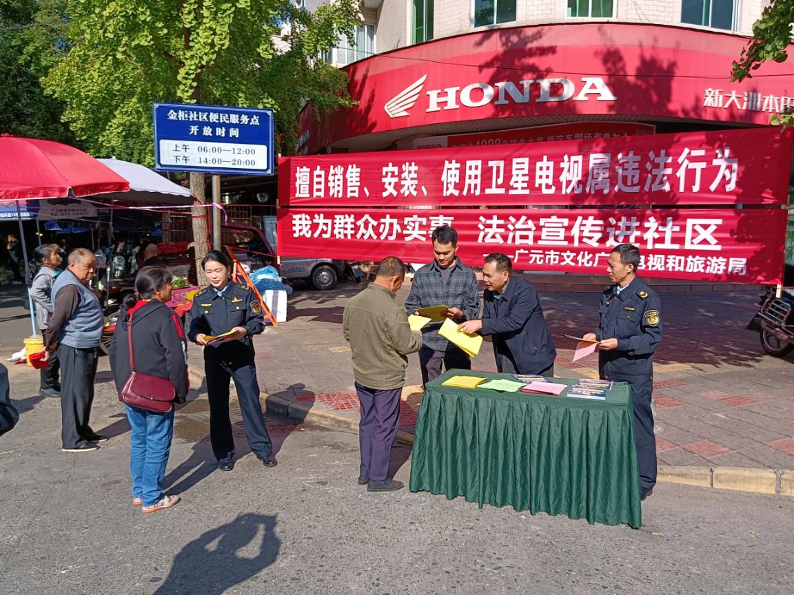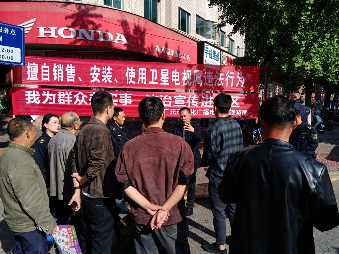 为全面贯彻落实党的二十大精神,深化主题教育,坚定不移贯彻总体国家安全观,10月10日,市文化广电旅游局、市文化市场综合执法支队、利州区文化旅游体育局联合开展了非卫设施和境外电视传输秩序宣传整治行动,进一步推动“无小耳朵市”创建。当天,共发放宣传资料3000余份、接受咨询110余人次、拆除非卫设施12套。