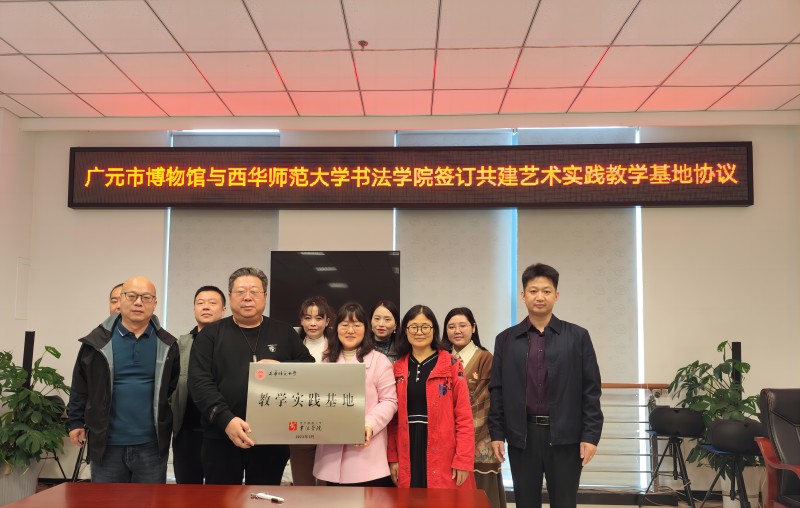 2023年11月3日,广元市博物馆与西华师范大学书法学院签订共建艺术实践教学基地协议并进行授牌,聘请馆长王洪燕为实践基地外聘指导教师。加强馆校合作,进一步传播广元悠久历史文化,站在书法、篆刻等多元角度传承传统文化,充分发挥好馆校合作平台功能,提供高质量文化供给,丰富社会文化生活。