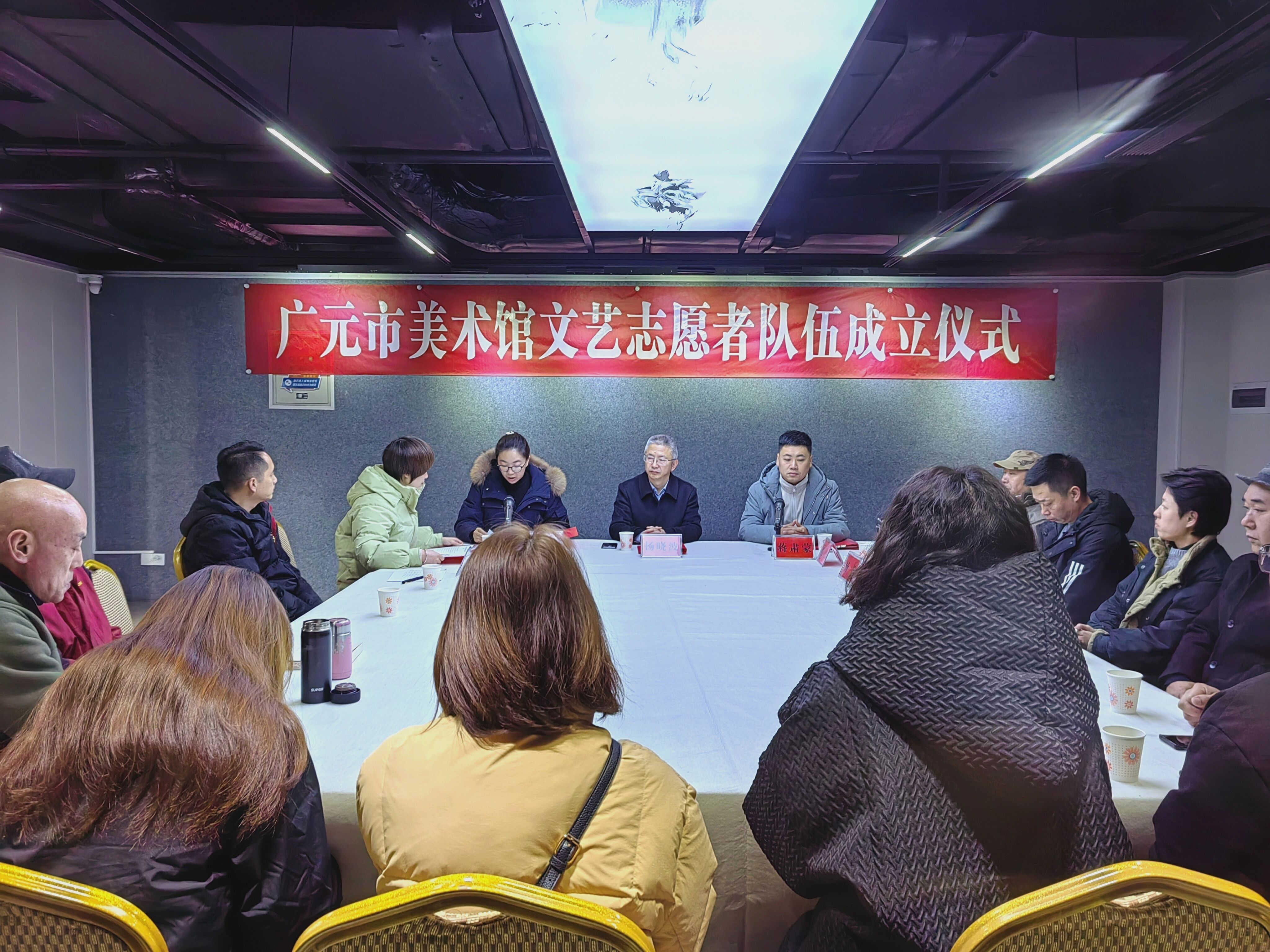 12月26日,广元市美术馆文艺志愿者队伍成立仪式在馆公共教育和群众体验活动室隆重举行。广元市文化广电旅游局党组成员、副局长杨晓波,市委宣传部志愿服务工作科科长蒋肃蒙,市文化广电旅游局公共服务科科长陈燕,市美协主席赵勇,市书协副主席兼秘书长杨林,市摄协副秘书长左长周等领导和嘉宾出席仪式。部分志愿者代表、市美术馆干部职工及美术爱好者近30人参加仪式。广元市美术馆馆长马昭蓉主持仪式。
