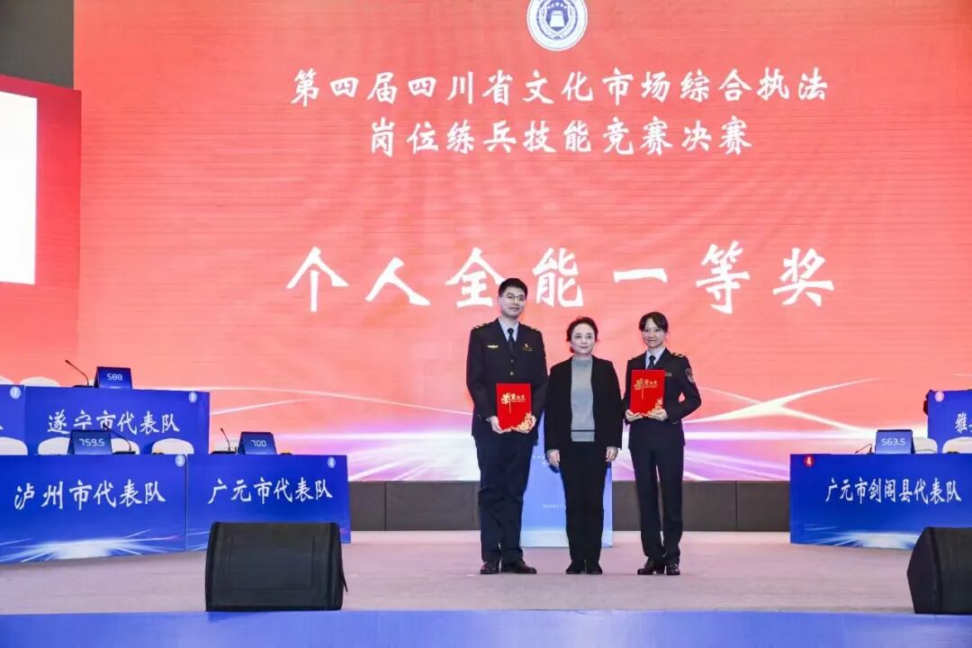 本次活动是四川文化旅游机构融合以来,参与范围最广、覆盖人数最多、比赛内容最全的一次练兵竞赛活动,经过“政策法规”“文书制作”“网络取证”“案卷纠错”“知识竞赛”5个科目的激烈角逐,成都市代表队、合江县代表队分别获得市、县级团体全能一等奖;成都代表队张牧荒、合江县代表队刘诚枫别获得市、县级个人全能一等奖。广元市代表队获得市级团体全能三等奖,广元市代表队段钊获得市级个人全能二等奖,剑阁县代表队孙小敏、剑阁县代表队李有为获得县级个人全能三等奖。
