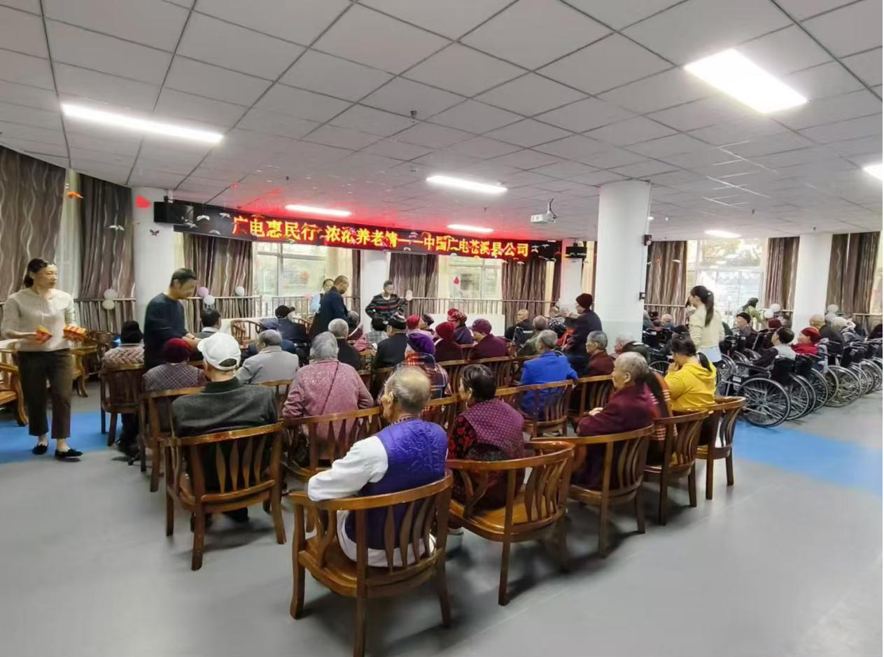 上图为开展“广电惠民行 浓浓养老情”活动。为老年群体开展适老服务,工作人员正指导老人操作使用常用数字产品,宣讲电信诈骗预防、手机支付、电视直播操作等知识,讲解话费查询、语音播报、智能助手等功能,同时为养老服务中心送去洗衣皂、抽纸、大米、牛奶、洗衣液等生活物资。