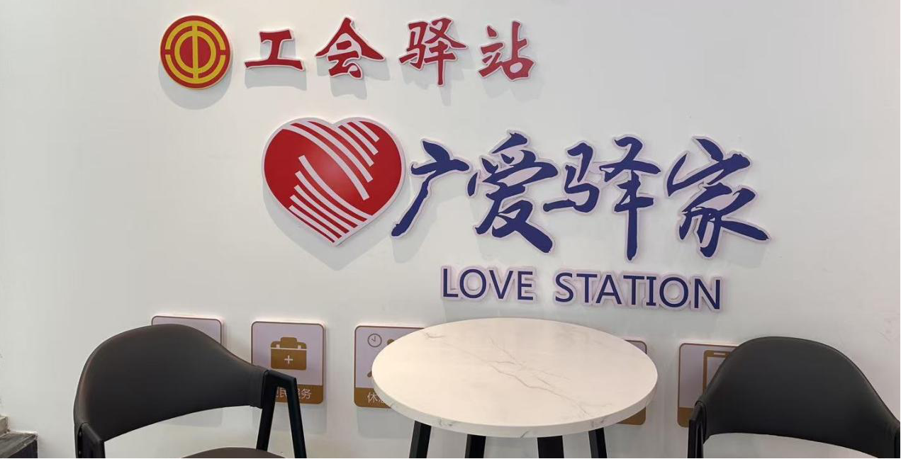 上图为广电“工会驿站 广爱驿家”。全市优选11个广电营业厅进行服务环境改造,解决户外劳动者“休息难、热饭难、喝水难”等问题,同时设置适老服务窗口及生活应急设施等。
