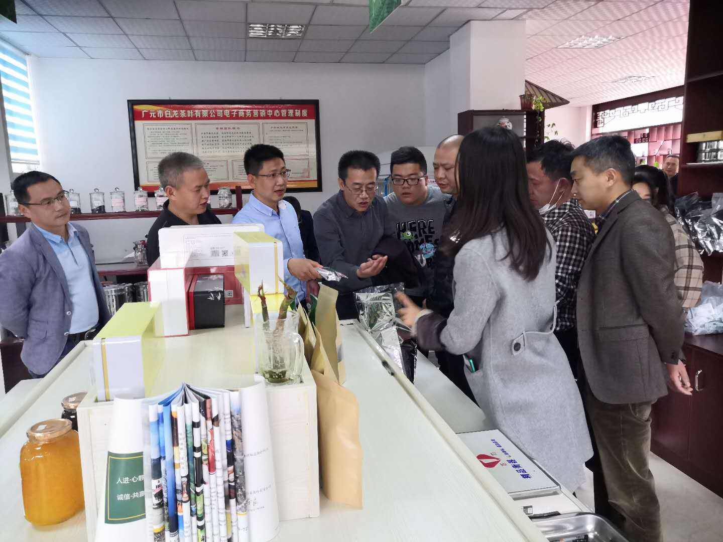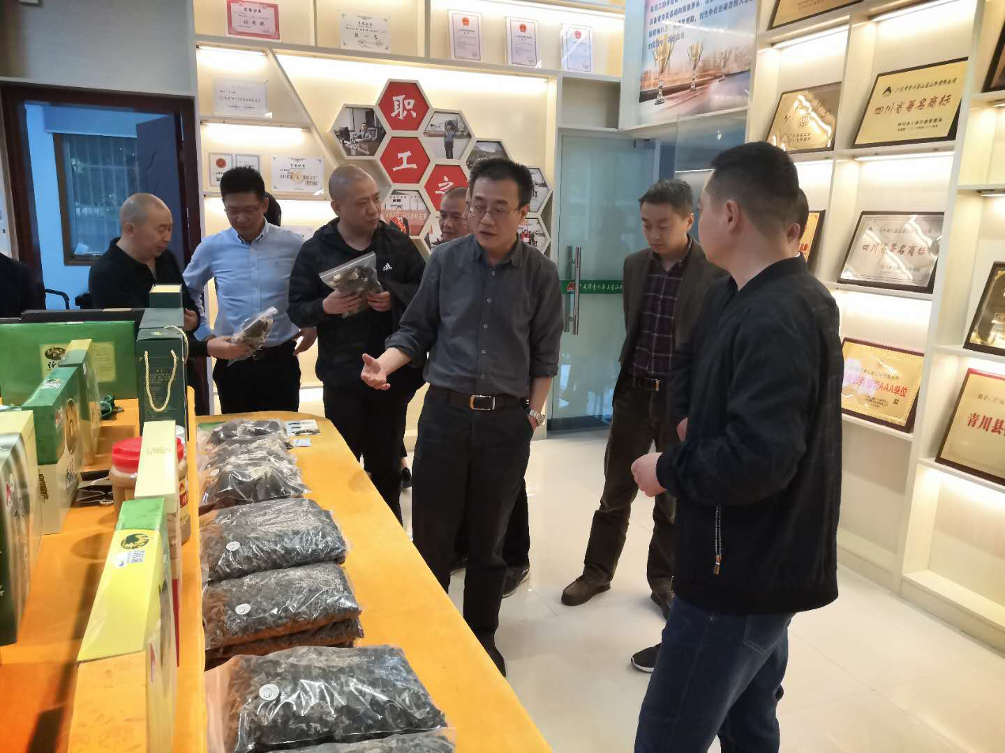 徐骁一行分别到青川沙洲白叶一号基地和白龙湖茶叶有限公司、山客山珍、海伶山珍等企业走访调研,就白叶一号基地茶叶种植情况和各企业生产经营情况进行深入了解,重点了解疫情期间企业复工复产、线上线下销售情况以及当前存在问题,并针对企业复工复产中存在的困难,现场给予指导和建议。为提振企业发展信心,在山客山珍和海伶山珍企业,他带头购买农特产品,以实际行动支持企业,刺激消费需求。在他的带领下,市、县两级商务系统党员干部纷纷消费,当场累计消费5000余元。因携带不便,相当部分党员干部即时扫码,当场下单。