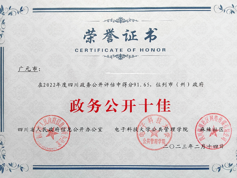 2022年以来,我市聚焦政务公开规范化标准化建设,持续推进政府信息公开、政府网站及新媒体建设管理工作,在市政府网站公开政策信息2万余条,并通过开展政府网站和政务新媒体建管问题专项整治行动,大力开展走好网上群众路线为民服务办实事工作,社会各界和群众满意率不断攀升。在《中国地方政府效率研究报告(2022)》中,广元政务公开(政府效率测度重要指标之一)在全国地级市中排名第2,同比提升128位。