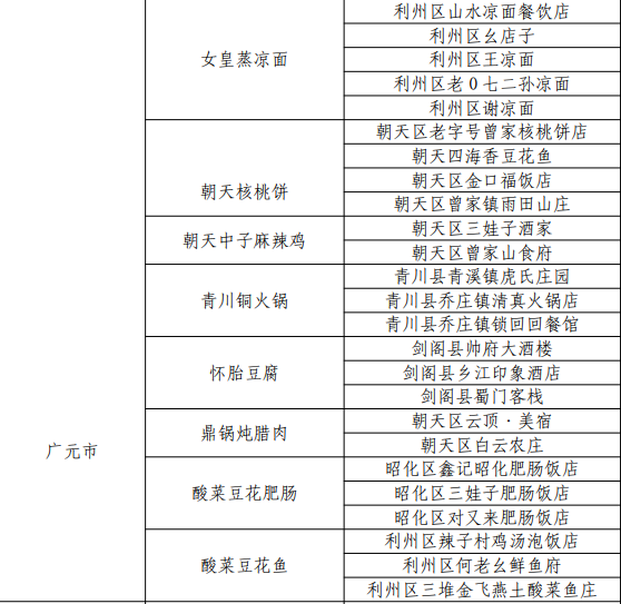 广元入选8道菜品、25家体验店。