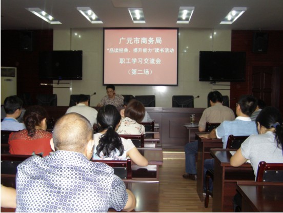 7月26日下午,市商务局第二场“品读经典、提升能力”职工读书活动学习交流会在局六楼会议室举行。机关全体职工参加了会议,安小宁局长主持读书交流会。会上,局外贸科张兴军同志与大家分享了他在阅读中国著名作家路遥代表作《平凡的世界》后的启迪:人类在征服自然改造世界的旅途中,只有在困难和挑战面前,积极的去面对,才会有发展,才会有未来。困境里的自卑,无奈中的反抗,积极中的进取都是社会文明进步过程中不可缺少的激励因素。外贸科景雯涛同志与大家交流了《习气》一文的读后感:种种不良的习气,我们不正视它、放任自流,导致种种梦想难以实现。细节决定成败,改掉坏习气,吸取更多的正能量,去感染身边的朋友、家人,我们的生活能够更健康,我们的事业就能更成功。服务业科苏雨婷为大家奉献了自己为父亲生日创作的散文《你是世界上最帅的男人》,文章虽显稚嫩,但字里行间真情流露了儿女对父母养育的感恩之心、孝道之情。感悟人的一生都在不停的索取和付出,我们每个人都应学会感恩。感恩亲人,感恩朋友,感恩社会。交流结束后,安小宁局长对各位的发言进行了点评,同时要求,一是要将活动持续开展下去;二是要提升活动的质量水平;三是交流发言的同志要精心准备,中心思想明确,重点突出,给人以健康的启示和正确的导向。