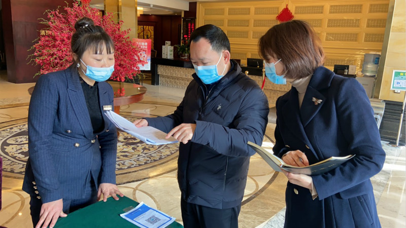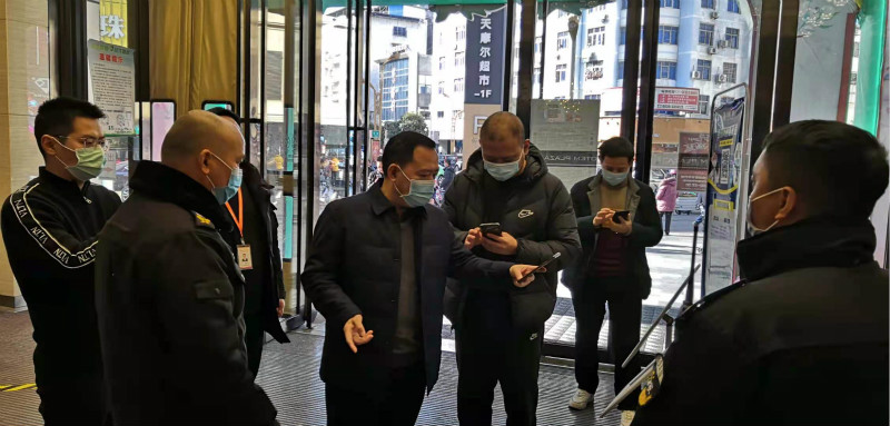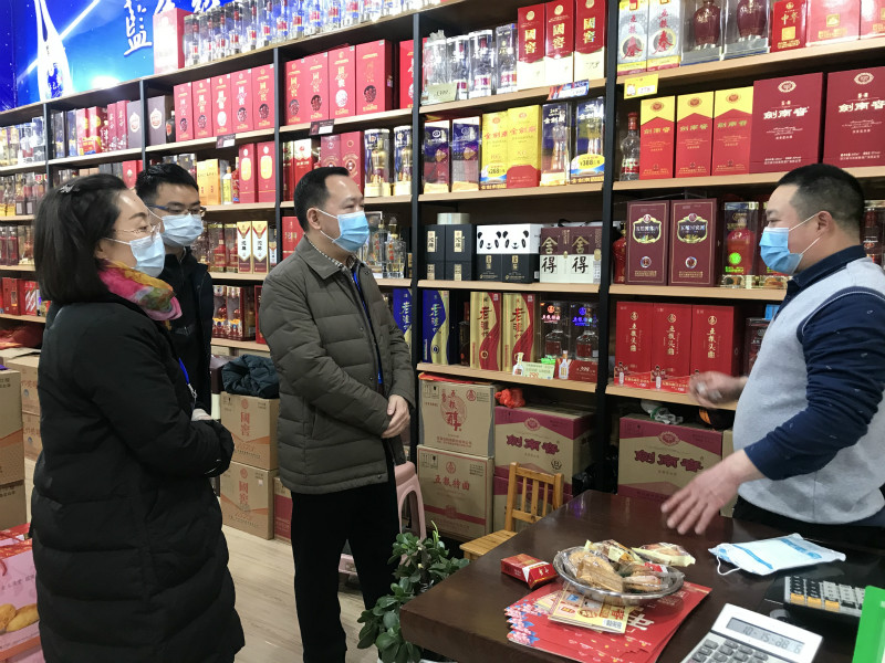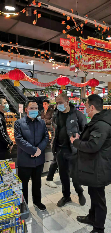 二是紧盯重点企业,全力出击一线。春节期间对市主城区六个片区成立三个巡查组,由相关领导带队,对商场、超市、酒店等重点商贸企业开展专项检查,督导企业落实疫情防控主体责任,对员工佩戴口罩上岗,进店顾客测量体温、佩戴口罩、核验“四川天府健康通”健康码、场所码,无码顾客登记信息、规范摆放消毒液和洗手液、设置“一米线”等疫情防控措施落实情况和企业安全经营活动进行督促和指导。对检查中发现的问题和隐患,现场要求整改。节日期间开展检查126人次,走访重点商贸企业27户,涉及重点疫情防控场所50余个,发现问题20个,现场督促整改20个,切实保障了商贸领域疫情防控和经营活动安全有序。