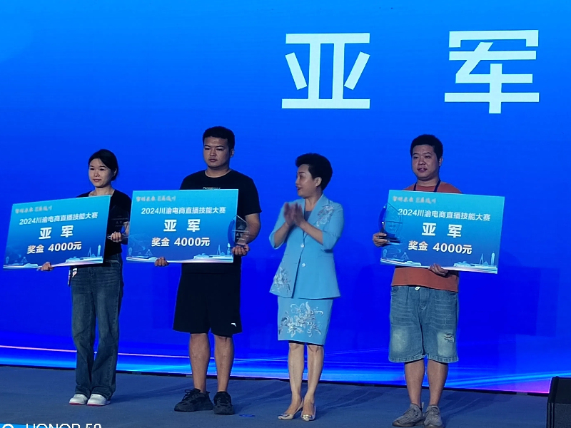 本次活动以“智创未来 E美达川”为主题,由四川省商务厅、达州市人民政府指导,达川区委、达川区人民政府、达州市商务局主办。2024川渝电商直播技能大赛共有来自广元市、达州市等川渝各地区26个直播团队参与,我市推荐的农村张富贵(张贵泉)团队成功通过初赛,在活动现场开展决赛,经过两个小时的现场直播,农村张富贵直播间成交金额5.30万元,累计观看人数1.86万人次,成交订单数533单,成交件数1352件。经综合评比决赛选手直播间成交金额、成交订单数等数据,我市农村张富贵战队荣获本次比赛亚军,获得奖金4000元。