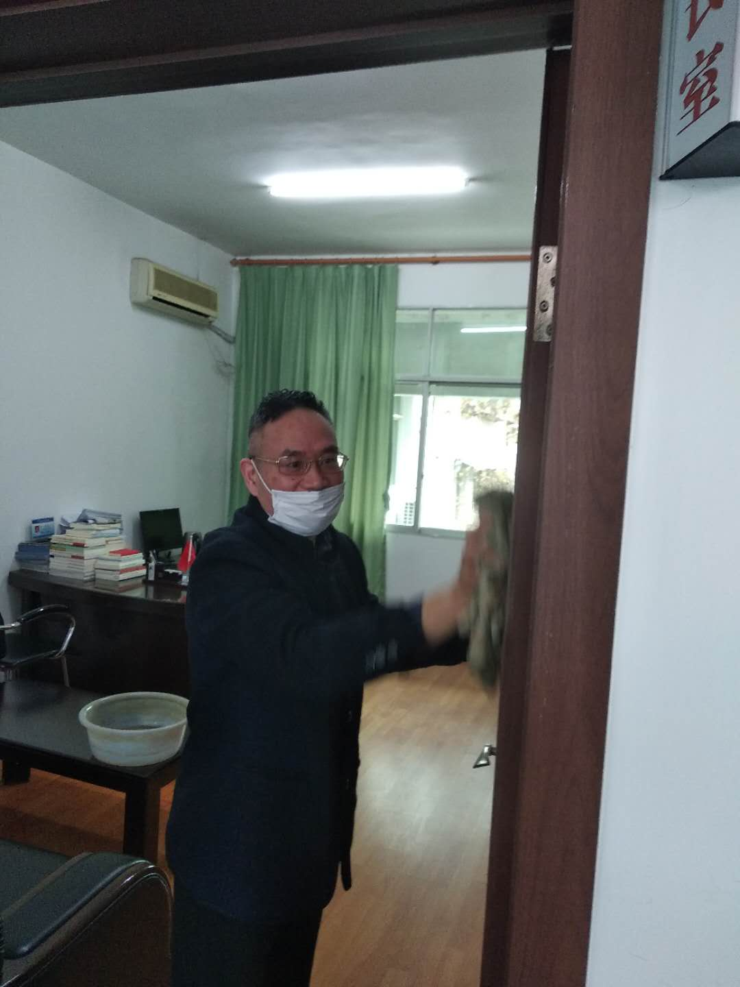 图为市商务局党组书记、局长徐骁清理办公室卫生死角