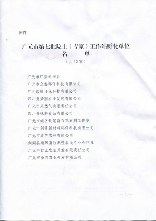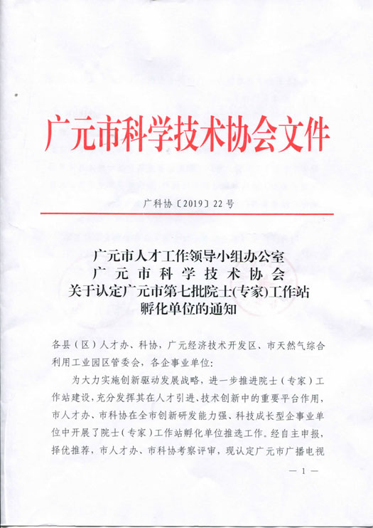 被认定为广元市第七批院士(专家)工作站孵化单位