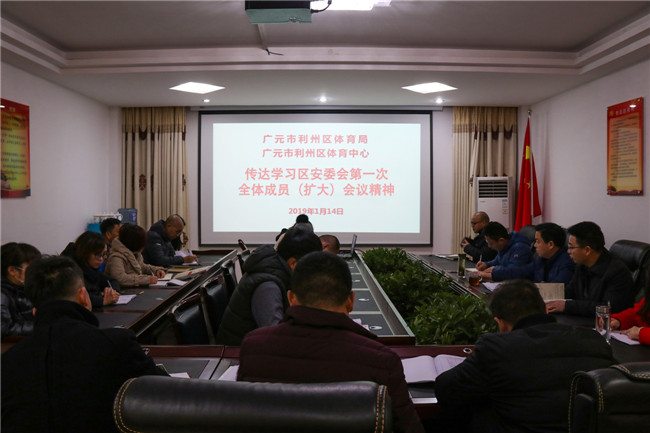 1月14日上午,利州区体育局召开全体干部职工会议,传达学习区安委会第一次全体成员(扩大)会议精神。