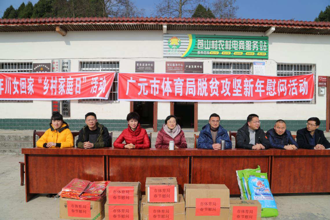 广元市体育局牢记脱贫攻坚政治责任,坚决落实“四个不摘”,1月16日局党组书记罗红明、局长刘素英带领各帮扶责任人深入帮扶的剑阁县汉阳镇壮岭村、张王乡苍山村全覆盖开展春节慰问活动,向帮扶村全体村民送上温暖关怀,并致以新春的祝福和问候。