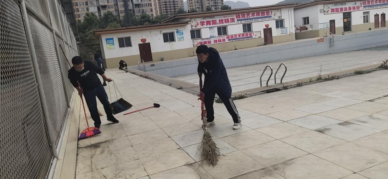 活动中,中心干部职工对辖区公共区域、办公室、足球场、游泳池、厕所等地的卫生环境进行大扫除,有的擦拭门窗,有的清除蛛网,有的拔杂草,有的清理卫生死角,有的及时清运办公垃圾……,大家齐动手、共同改善办公环境和活动环境。