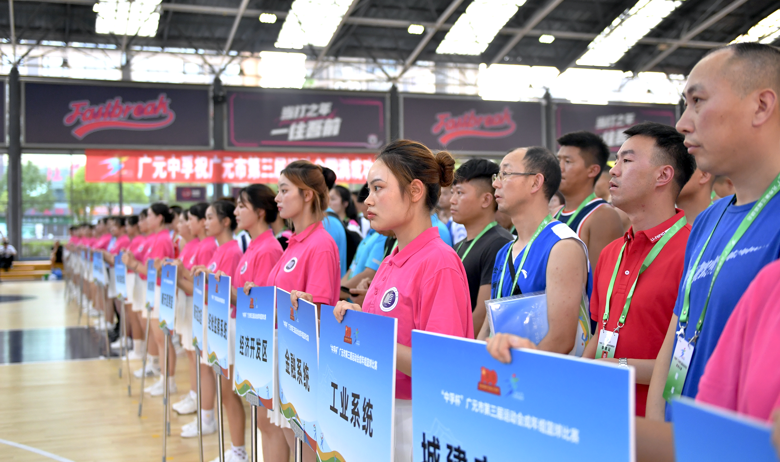 7月12日晚,广元市第三届运动会成年组篮球比赛在澳源体育中心风雨篮球场开赛,即日起至7月18日,30支球队在此将展开激烈角逐。副市长、第三届市运会组委会主任吴桂华出席开赛仪式并宣布开赛。