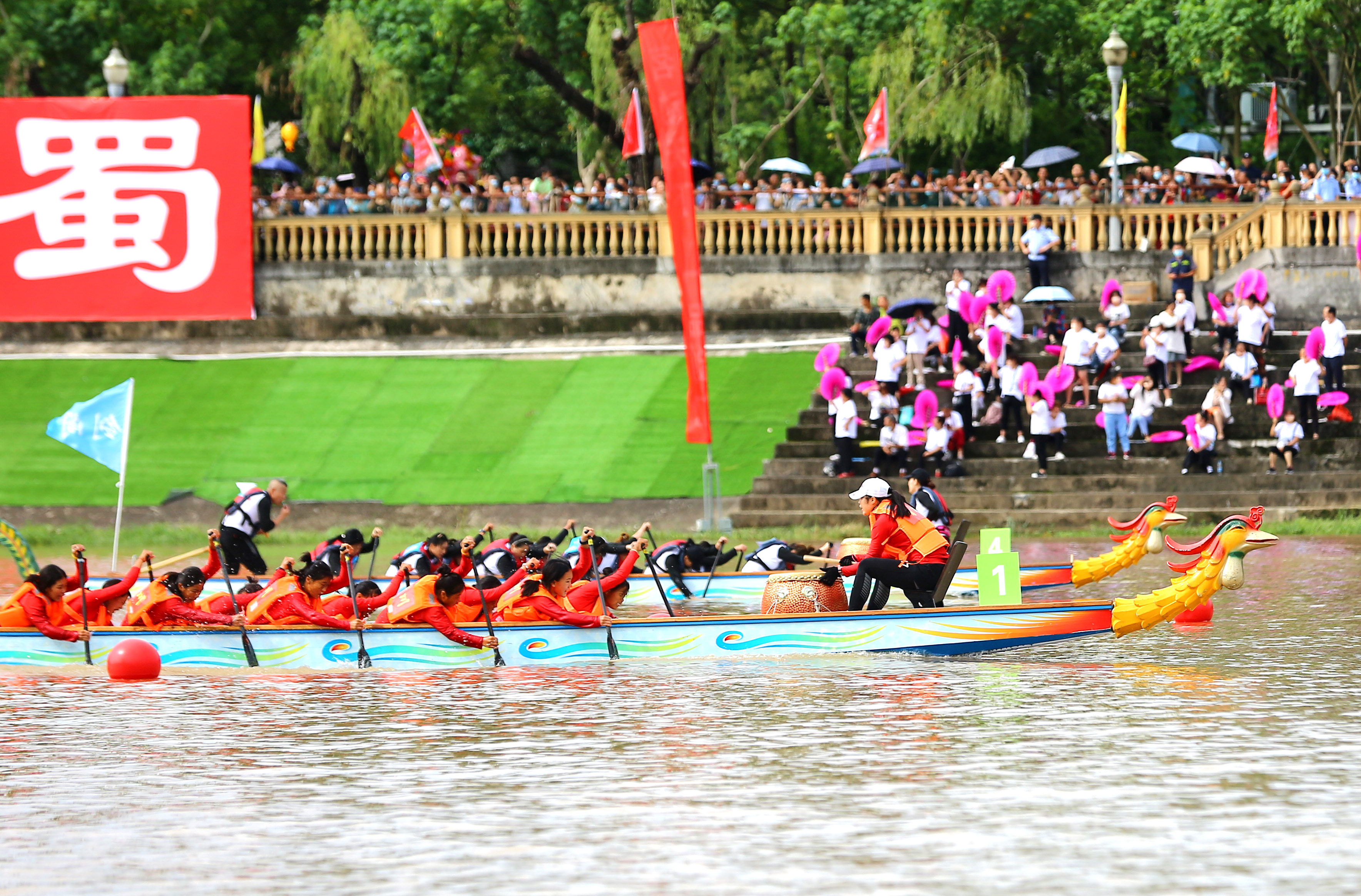 当凤舟800米直道竞速决赛的发令枪声响起,8支参赛凤舟队分成2组展开激烈角逐。河面上,凤舟犹如展翅高翔的金凤凰乘风破浪,运动员们甩开膀子,拼尽全力,展示了广元女儿自强不息、昂扬奋进的精神面貌,搏击的水浪声、急促的鼓点声,将比赛推向高潮。