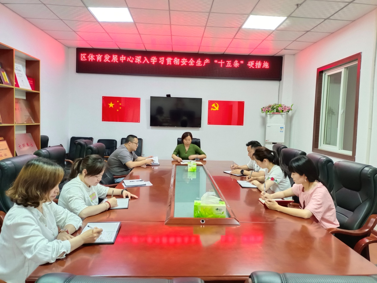 5月9日,朝天区体育发展中心召开全体干部职工会议,传达学习贯彻落实国务院安委会安全生产“十五条”硬措施,并对近期安全防范工作进行再推动、再落实,确保我区体育系统安全生产形势持续平稳。
