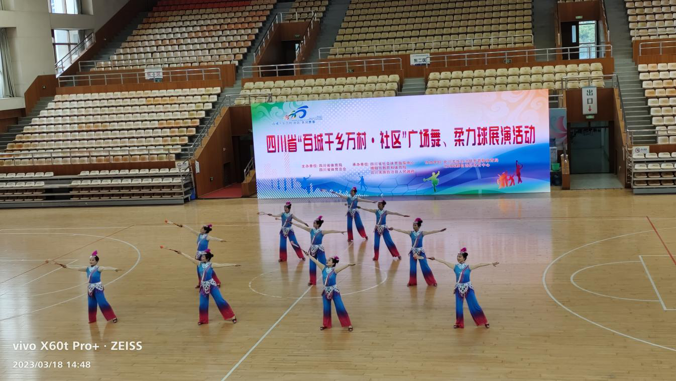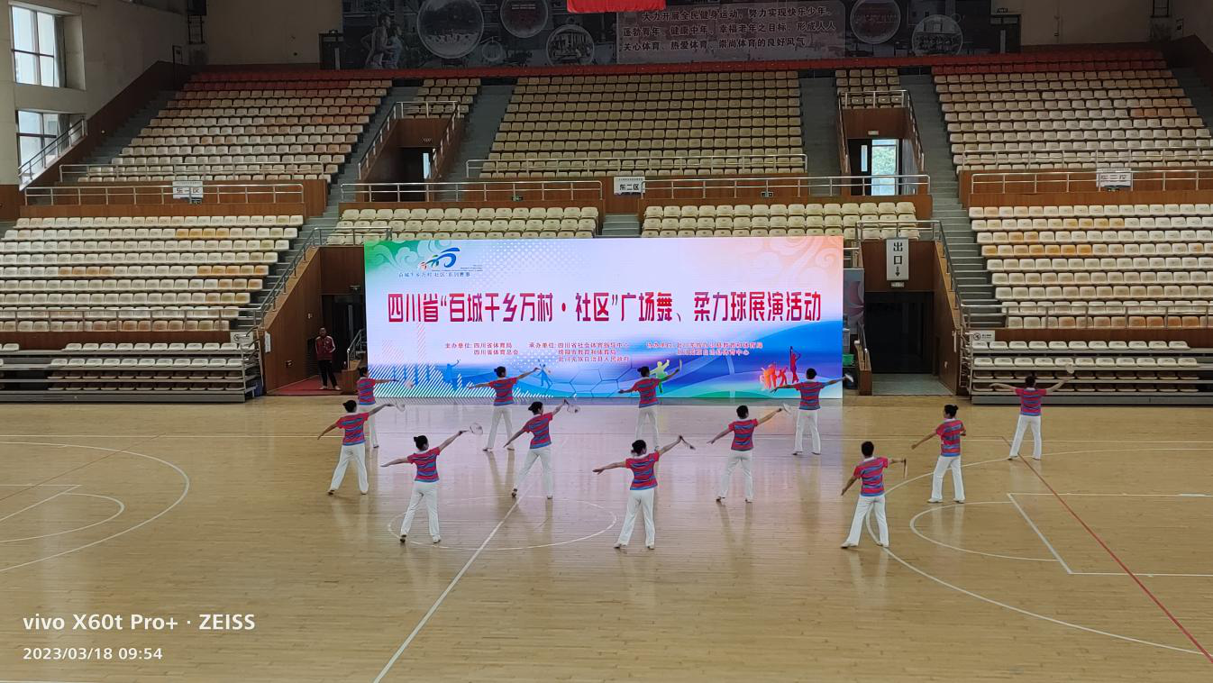 3月18日,由四川省体育局、四川省体育总会主办,四川省社会体育指导中心、绵阳市教育和体育局、北川羌族自治县人民政府承办的四川省“百城千乡万村·社区”广场舞、柔力球展演活动在北川羌族自治县体育中心顺利落下帷幕!来自省内各市州的9支代表队参加柔力球项目规定套路、自编套路的展演,昭化区金凤凰柔力球队展演的《四川欢迎你》以9.373分的全场最高分获得规定套路第一名,展演的《俏花旦》获得自编套路最佳编排奖。
