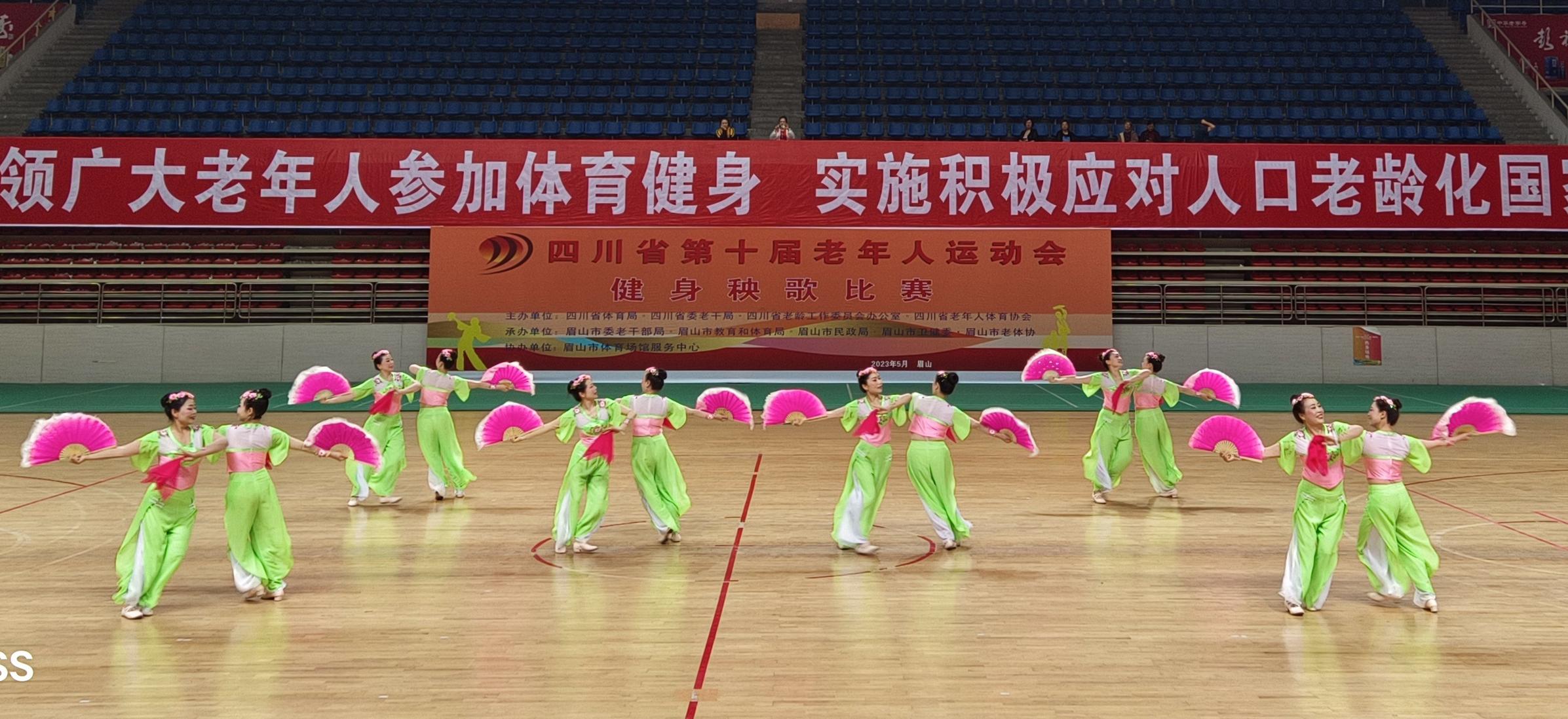 四川省第十届老年人运动会健身秧歌比赛,由四川省体育局、四川省委老干局、四川省老龄工作委员会办公室、四川省老年人体育协会主办,眉山市委老干部局、眉山市教育和体育局、眉山市民政局、眉山市卫健委、眉山市老体协承办,在眉山市体育馆举行。