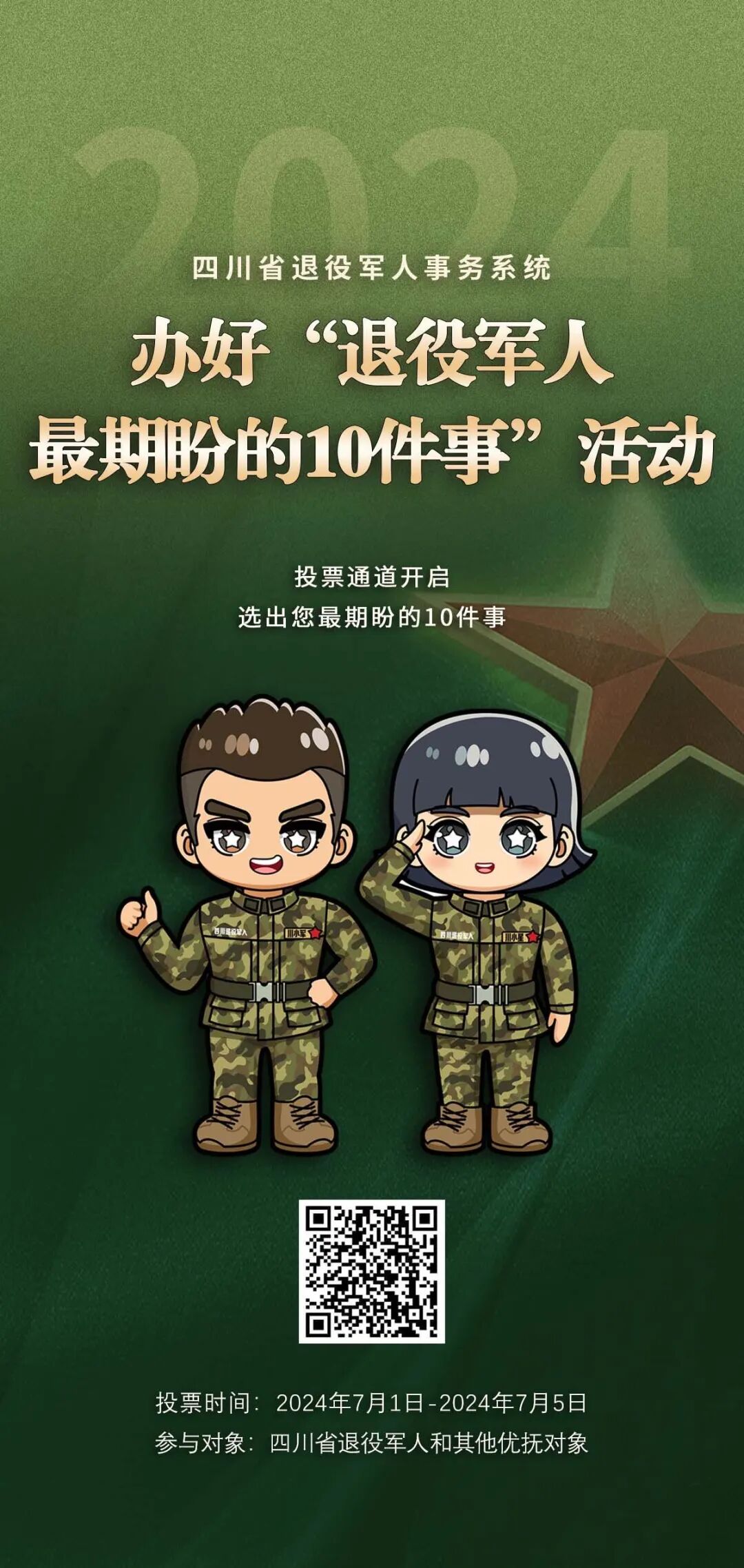 为进一步做好问需于民、精准服务,切实把服务保障退役军人的好事办好、实事办实,全省退役军人事务系统开展2024年度办好“退役军人最期盼的10件事”活动。