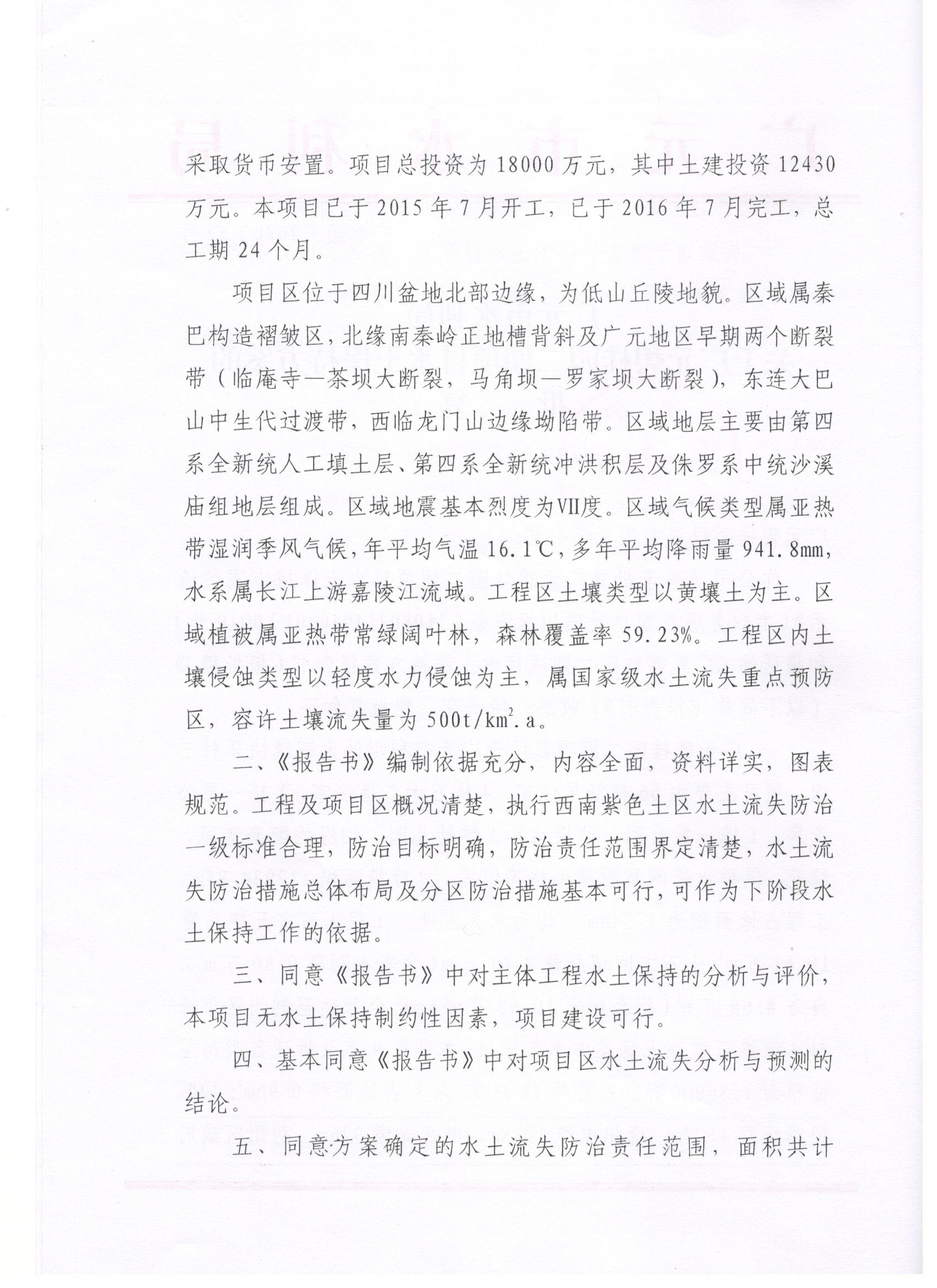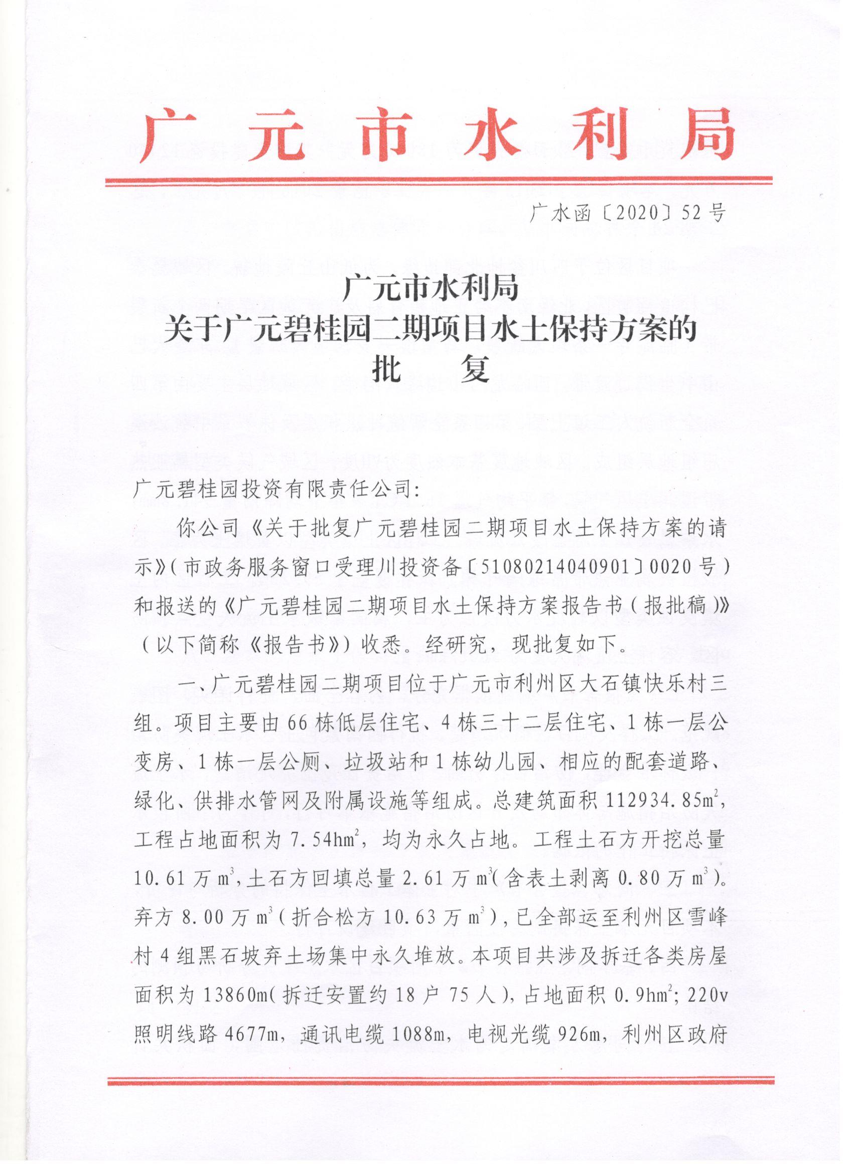 > 关于广元碧桂园二期项目水土保持方案的批复