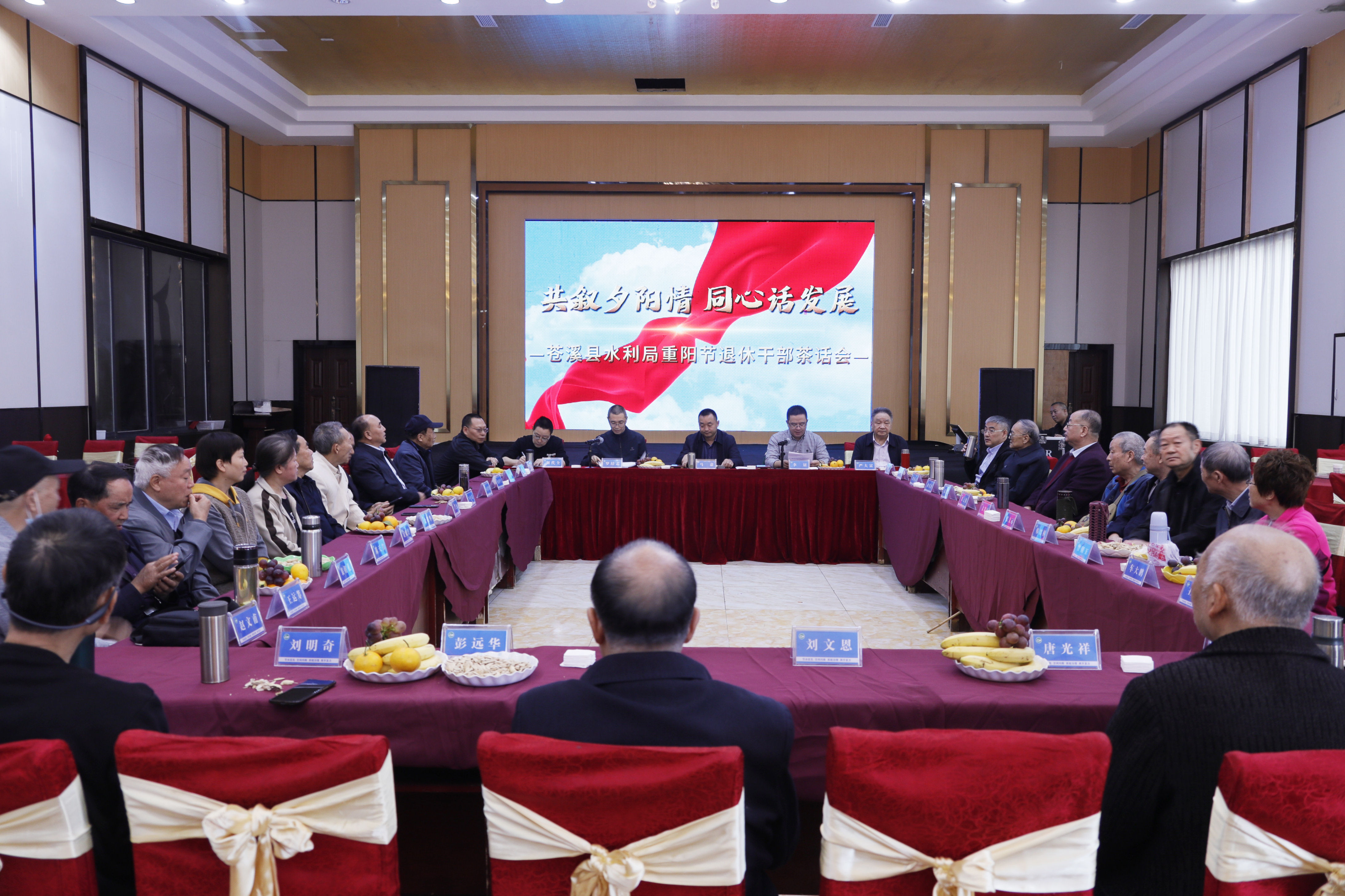 菊花黄,桂花香,岁岁重阳,今又重阳。为弘扬中华民族尊老敬老爱老的传统美德,丰富水利退休同志的精神文化生活。10月22日,苍溪县水利局组织离退休同志开展“共叙夕阳情,同心话发展”重阳节活动,局党组书记、局长马嘉主持,组织学习贯彻习近平新时代中国特色社会主义思想,积极引导离退休老干部学思践悟,坚定信仰,忠诚实践。