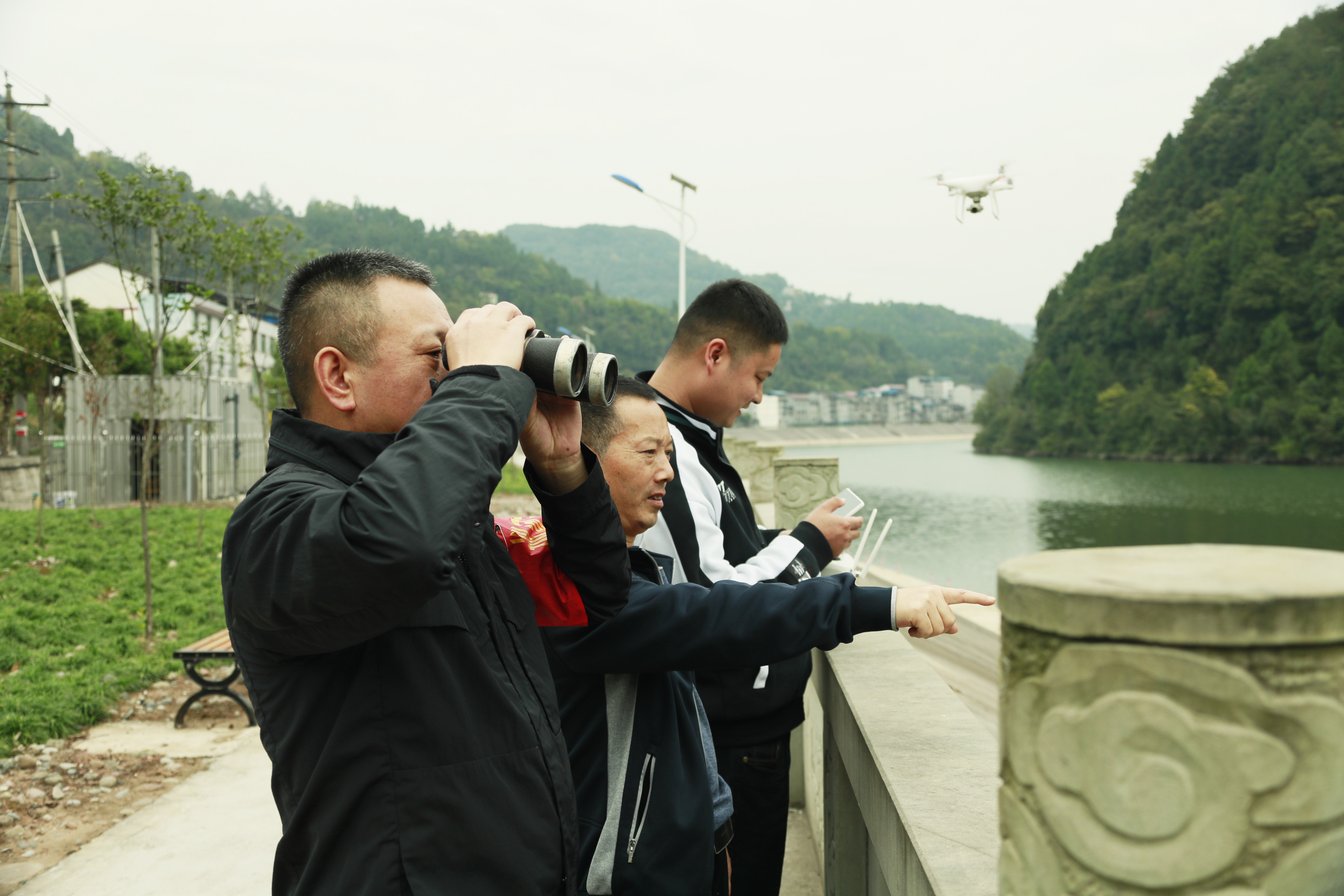 (苍溪县河湖长制办公室和桥溪乡河湖长专职人员在巡河)