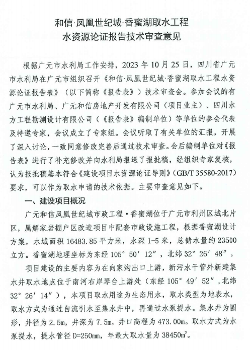 附件:和信·凤凰世纪城·香蜜湖取水工程水资源论证表技术审查意见