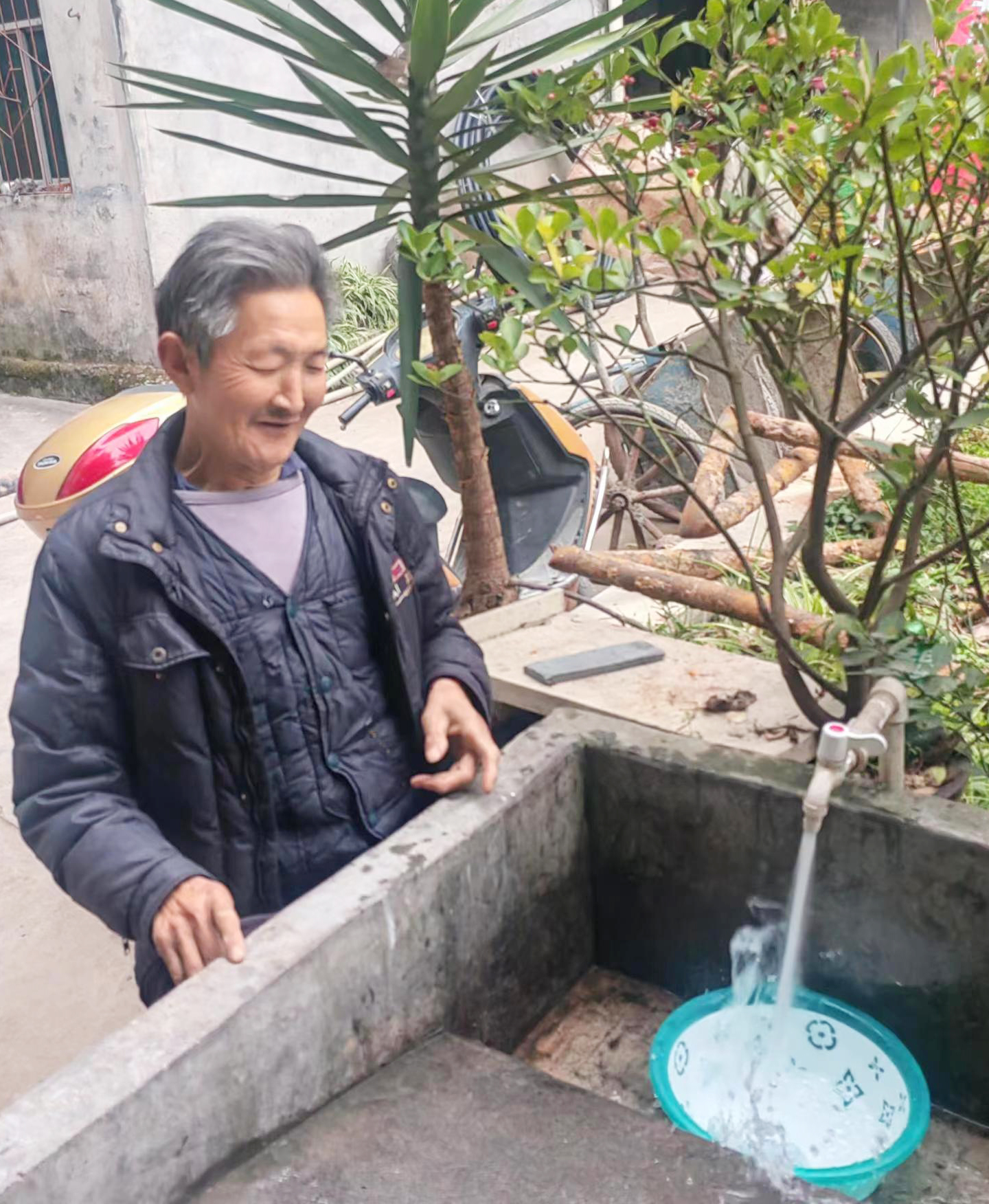 “以前用的水小,而且看起来颜色也不对劲,我们现在的自来水更有保障了,水足了,压力大,水质也明显有变化了,方便多了,我们现在用的安心了”白驿社区居民张永泉满脸堆笑,看着水龙头流出的自来水高兴地说。