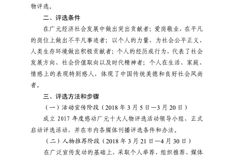 中共广元市委宣传部关于开展2017年度感动广元十大人物评选活动的通知