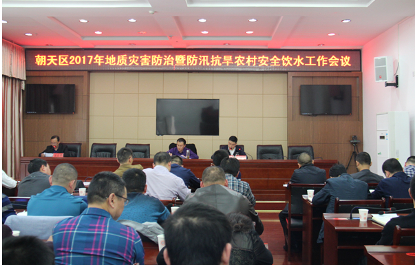 会议通报了2017年朝天区气候情况分析,学习传达了国务院副总理、国家防汛抗旱总指挥部总指挥汪洋在国家防总2017年第一次全体会议上的重要讲话精神和国家防总副总指挥、水利部部长陈雷主持召开的会商会精神。学习传达了国家、省、市地质灾害防治工作会议精神,通报了朝天区当前地质灾害趋势分析,安排部署了2017年地质灾害防治、防汛抗旱及农村安全饮水工作,签订2017年度地质灾害防治、防汛抗旱及农村安全饮水工作目标责任书。