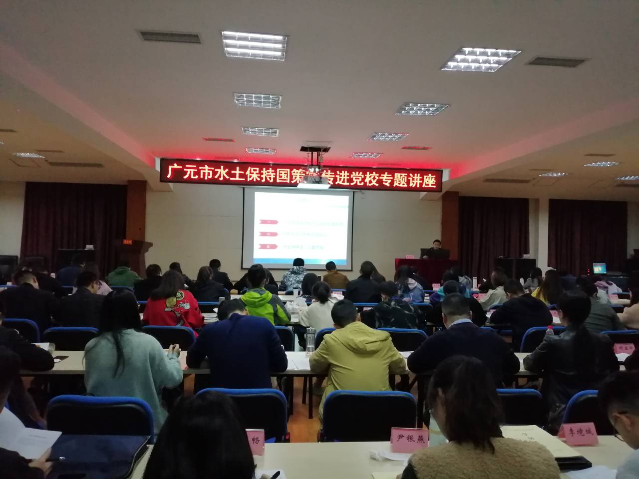 10月29日,四川省广元水土保持生态环境监测分站高级工程师、站长王翼龙博士以“加强水土保持 建设生态文明”为题,为2019年度广元市第四期新录用公务员初任培训班全体学员和水保办全体职工80余人进行了专题讲座。这次专题讲座由广元市委党校和市水土保持委员会联合举办,在市委党校二楼阶梯教室开展,会前向全体学员发放了《中华人民共和国水土保持法》宣传手册。