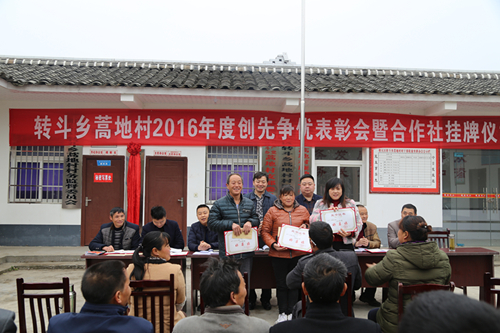 近日,转斗乡蒿地村组织召开2016年度创先争优表彰会暨合作社成立挂牌仪式。市水务局驻蒿地村第一书记王超主持会议和挂牌仪式,市水务局党组成员、机关党委书记潘洪宾,市水务局驻蒿地村帮扶工作队、转斗乡干部、蒿地村村组干部及群众代表共80余人参加会议。
