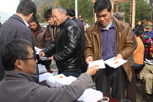 市水务局现场向群众发放了《中华人民共和国土地法》、《中华人民共和国婚姻法》和《中华人民共和国妇女儿童权益保障法》等9部农村常用法律法规读本1000多册,向村委会捐赠法律读本5000余册。