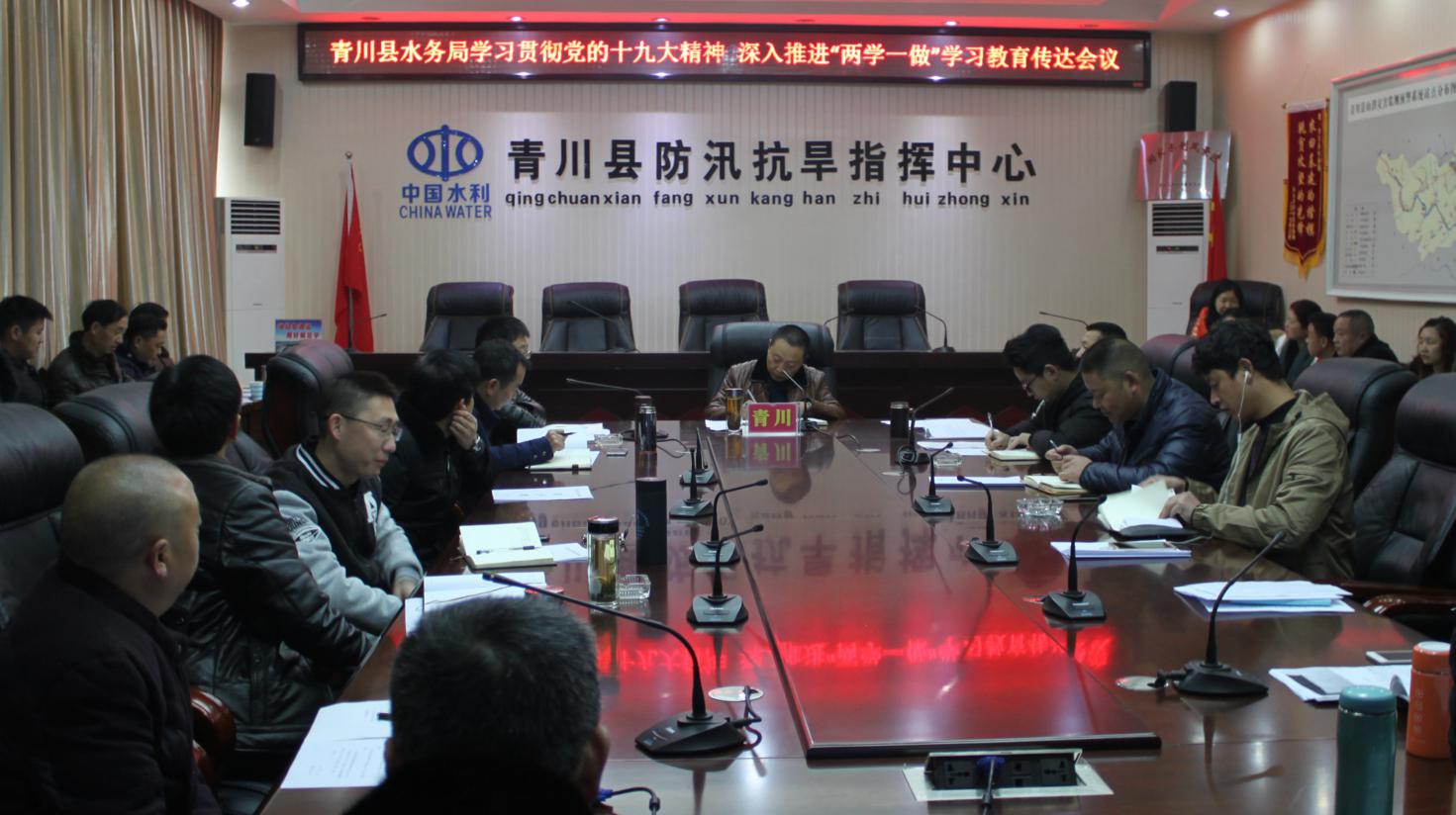 自党的十九大召开以来,青川县水务局深入部署十九大精神学习宣传贯彻工作,通过与全县水利建设工作实际相结合,采取多种形式深刻学习领会大会精神,确保十九大精神在全局干部职工中学习、领会、贯彻到位。