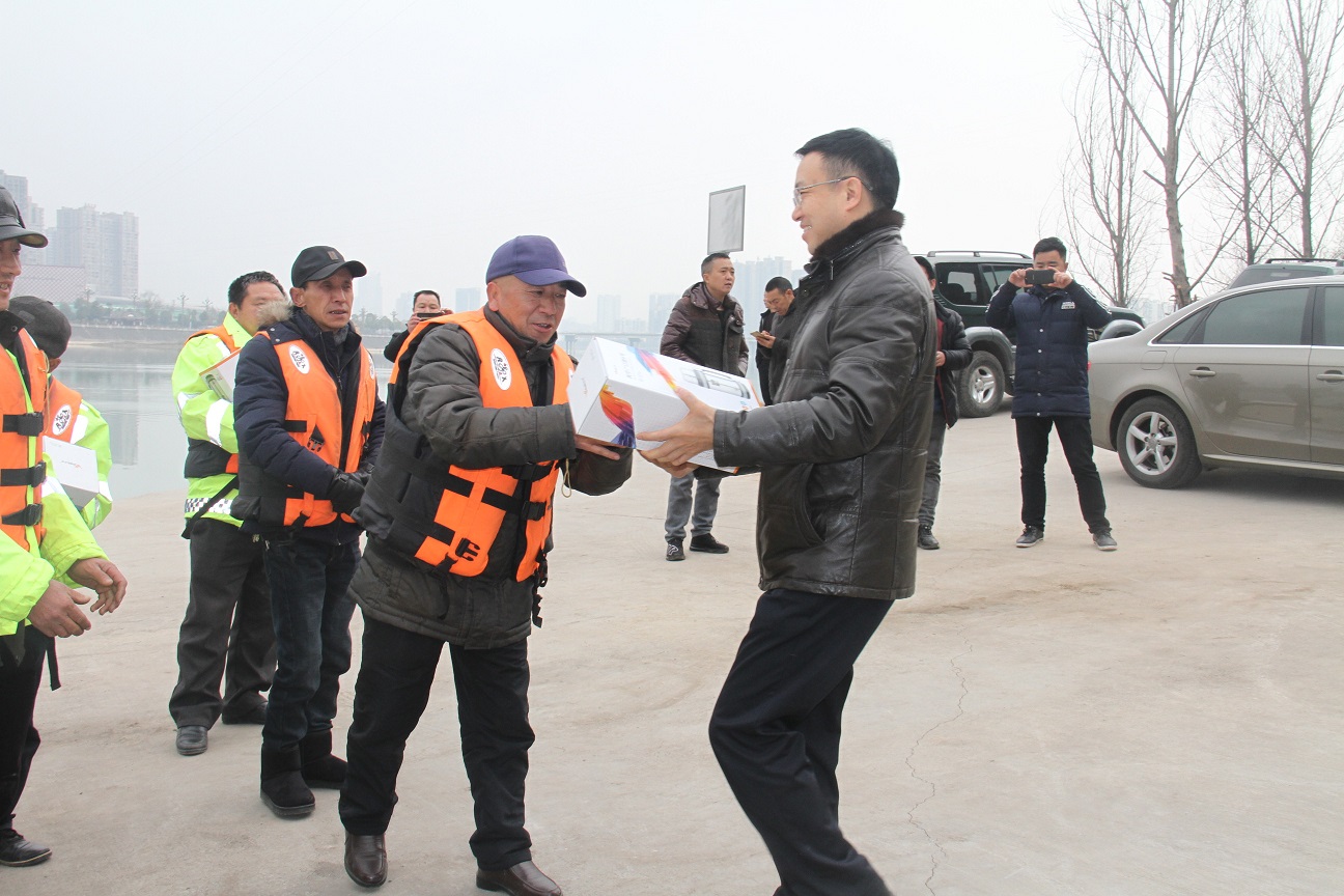 2月13日上午,局党组书记、局长一行来到塔山湾码头,看望慰问市栖凤湖清漂一线工人,送上保温壶、春联等慰问物资,并致以节日问候。局党组成员王友辉陪同慰问。
