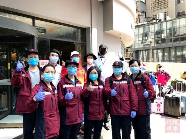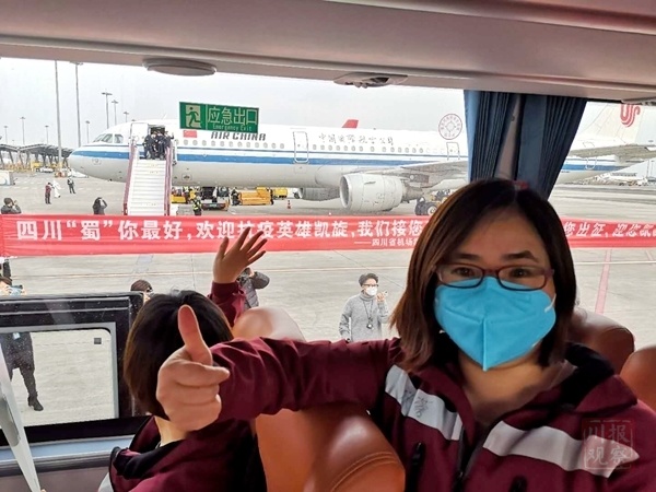 在机场,四川医疗队与山东医疗队相遇,“他们对着我们喊四川火锅,我们对着他们喊山东大馒头,大家互相挥手道别,真的很舍不得。”广元市中医院神经内科副主任陈楠说。
