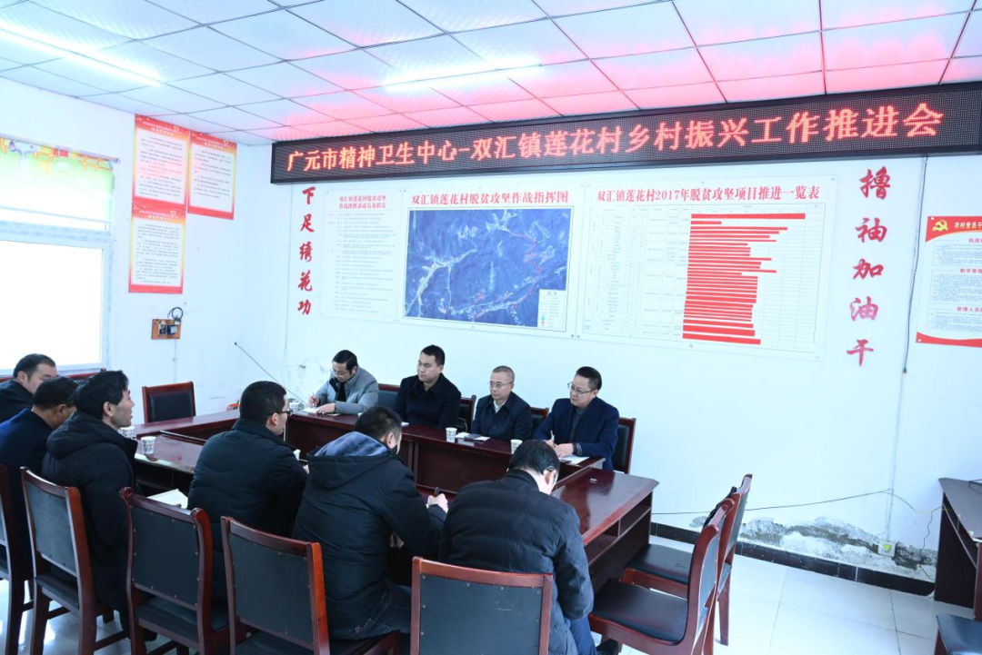 12月13-14日,广元市精神卫生中心主任张英辉带队,分别前往利州区白朝乡月坝村和旺苍县双汇镇莲花村,调研全面巩固脱贫攻坚成果有效衔接乡村振兴工作并主持召开工作推进会。党委副书记王加树、纪委书记母斌以及相关职能部门负责人分段参加调研。