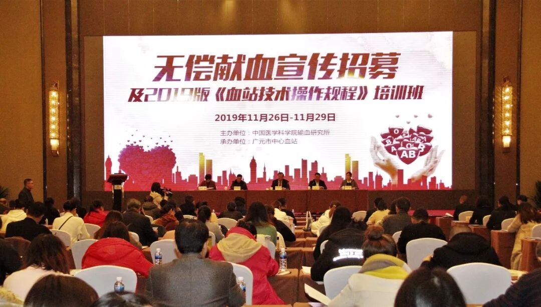 11月26-28日,由中国医学科学院输血研究所主办,广元市中心血站承办的全国无偿献血宣传招募及《2019版血站技术操作规程》培训班在广元市成功举办,来自全国8个省(市)自治区的100余位采供血行业专家学者参加了此次培训。